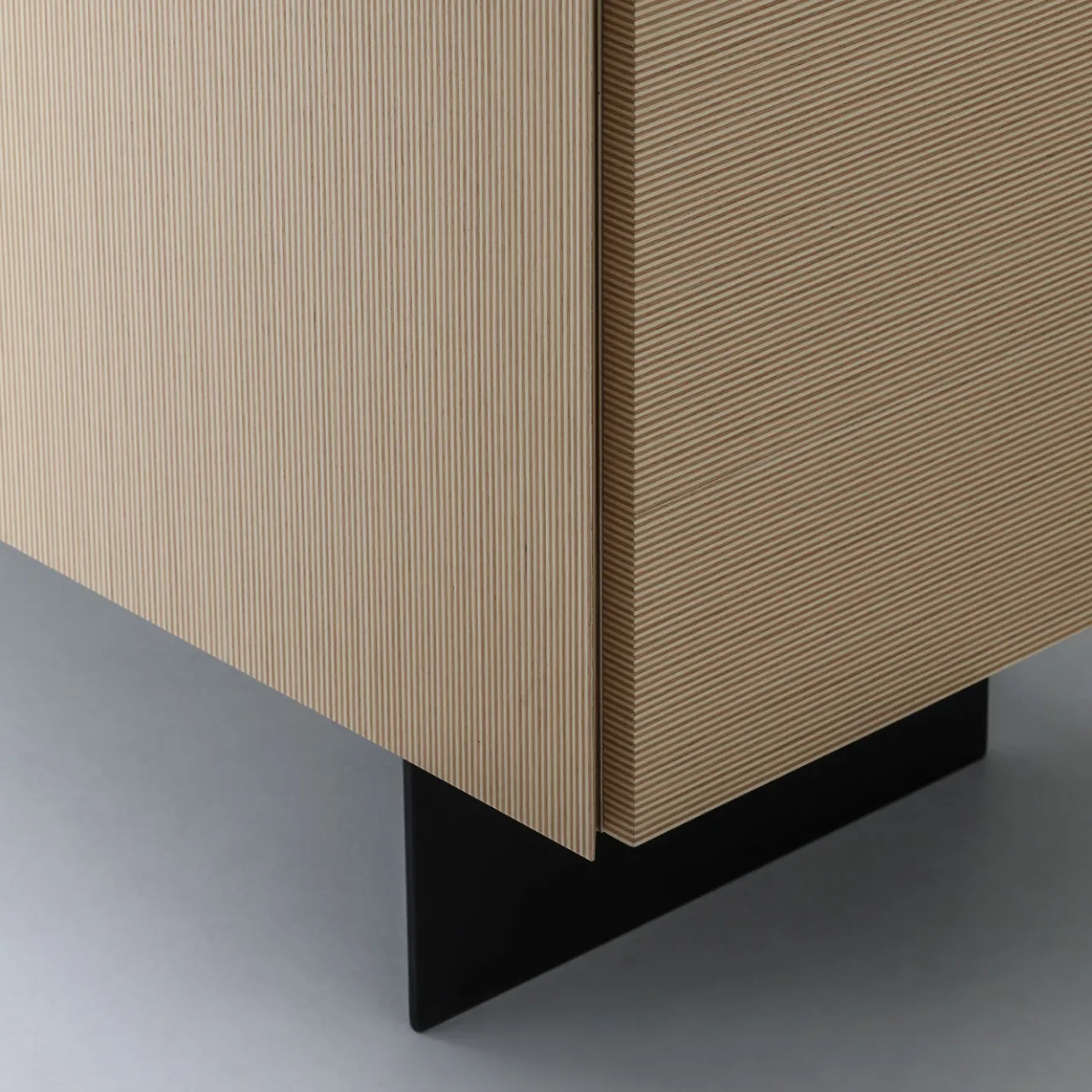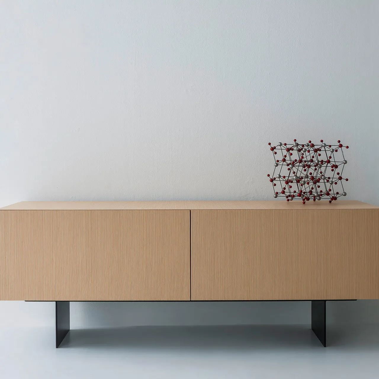 Parte della collezione Striped, questa credenza è una scelta elegante per un interno minimalista e moderno. L’elemento distintivo di questa serie è il legno stratificato che crea un intrigante motivo geometrico che unisce la raffinatezza di un’accurata lavorazione artigianale al calore naturale del materiale. Le giunzioni a 45 gradi hanno lo scopo di mantenere una superficie continua senza interruzioni. Pensando al “less is more”, Sebastiano Sottos ha creato un pezzo versatile per un ingresso, un soggiorno o una sala da pranzo.