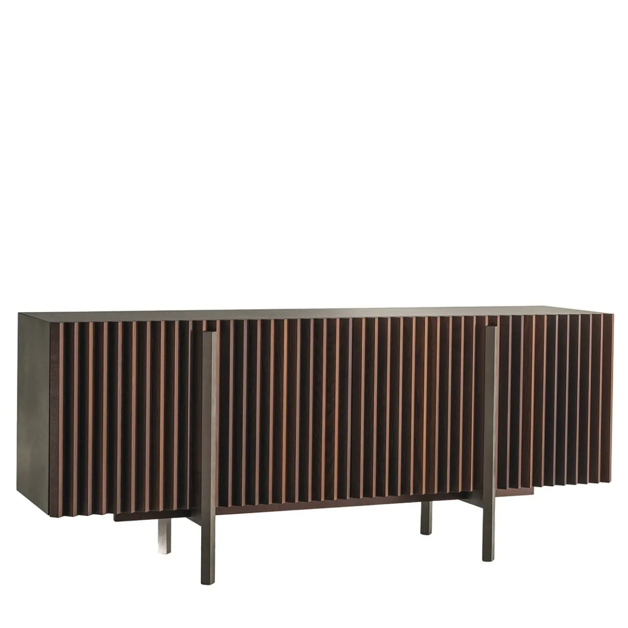 Valorizzate lo spazio con il mobile con struttura e gambe in finitura bronzo grigio chiaro. Dispone di 4 ante in frassino termotrattato e di ripiani interni per un ampio spazio di archiviazione. Sono disponibili cassetti interni opzionali e di varie dimensioni per soddisfare le vostre esigenze. Perfetto per un tocco contemporaneo. Per ulteriori informazioni, rivolgersi al Concierge.