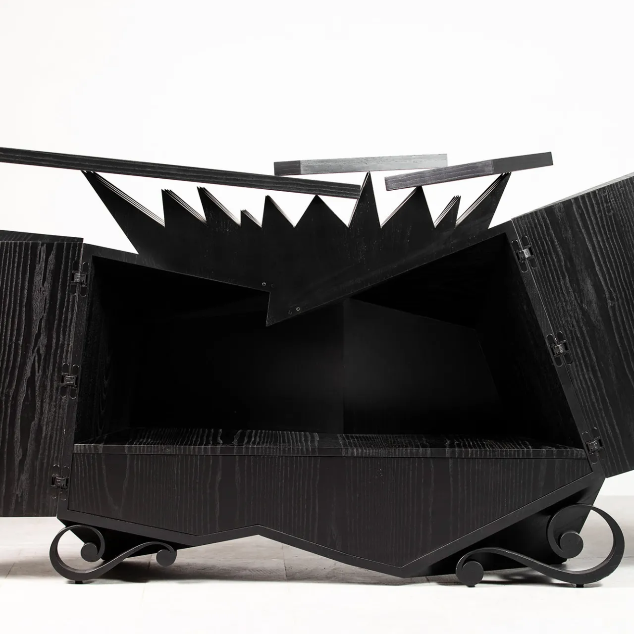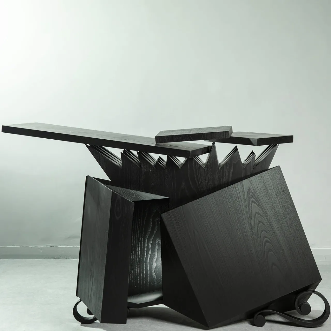 L’esclusiva creazione è firmata, datata e fa parte di una serie numerata da 1 a 19, oltre a una prova d’artista. Realizzato in rovere laccato nero opaco a poro aperto, mette in risalto le venature naturali del legno e presenta una finitura elegante e moderna. Un oggetto da collezione che unisce un’eccezionale maestria artigianale a un’eleganza senza tempo, perfetto per aggiungere un tocco distintivo a qualsiasi interno.