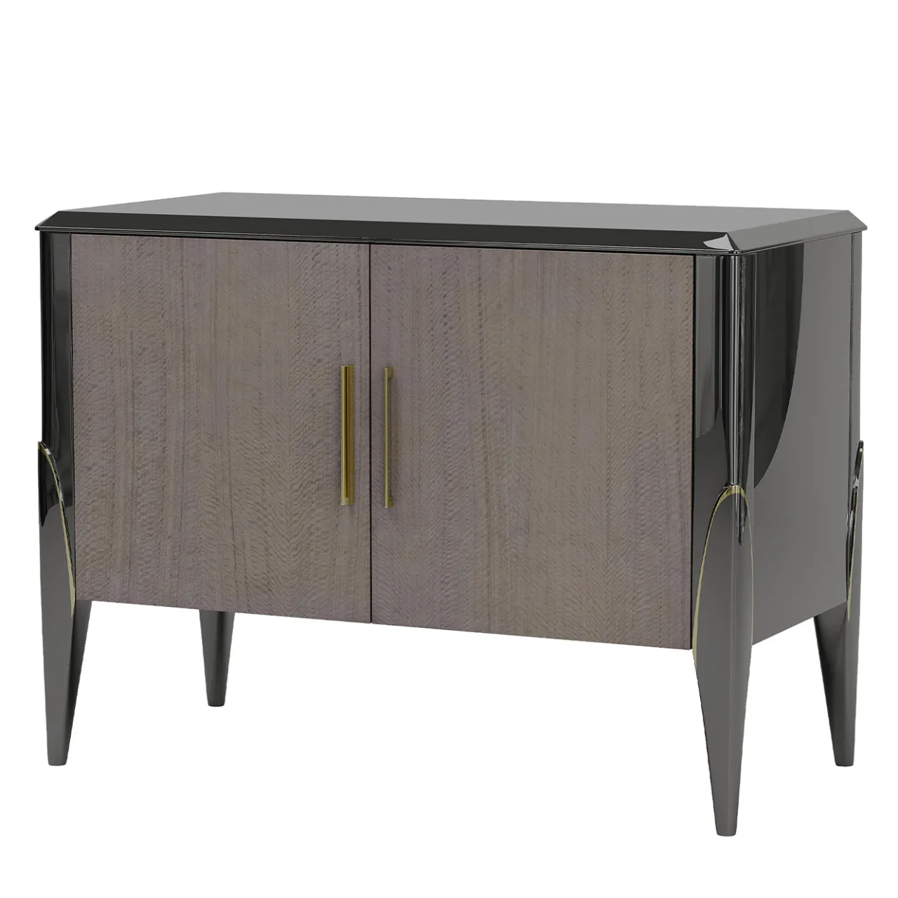 Questa credenza presenta un design equilibrato con porte in legno Natural Eucalyptus, impostate su un elegante telaio laccato nero-bruno. Maniglie in metallo aggiungono calore e modernità, completando le sue linee sofisticate. Ideale per un ufficio o uno spazio abitativo elegante, questa credenza di medie dimensioni combina funzionalità con estetica raffinata.