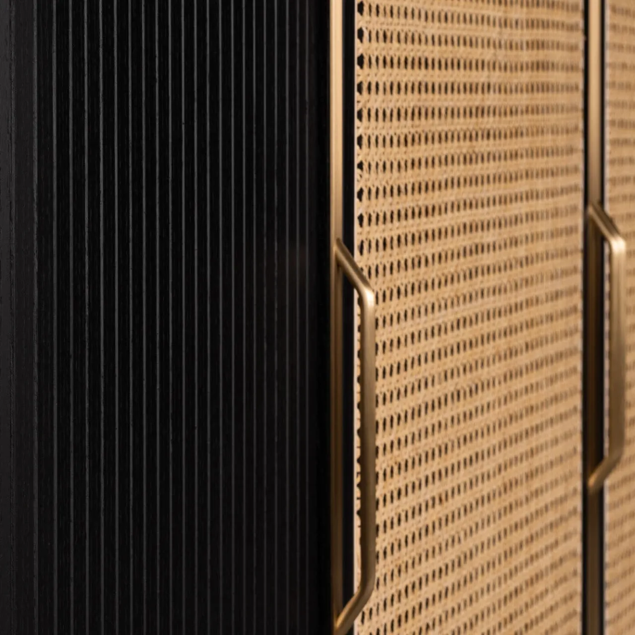 Questa credenza glamour presenta una combinazione classica di materiali in una reinterpretazione moderna e accattivante. La sua sofisticata struttura in frassino è arrotondata ai bordi e presenta un’intramontabile finitura nera, che si adatta alla canna viennese bianca delle ante centrali a battente. Le ante laterali scorrevoli presentano una texture scanalata, mentre i piedi affusolati della credenza sono impreziositi da dettagli in ottone, che costituiscono anche le maniglie. Il piano è in legno, si prega di chiedere al Concierge per dettagli e prezzi. Disegnata da Libero Rutilo.