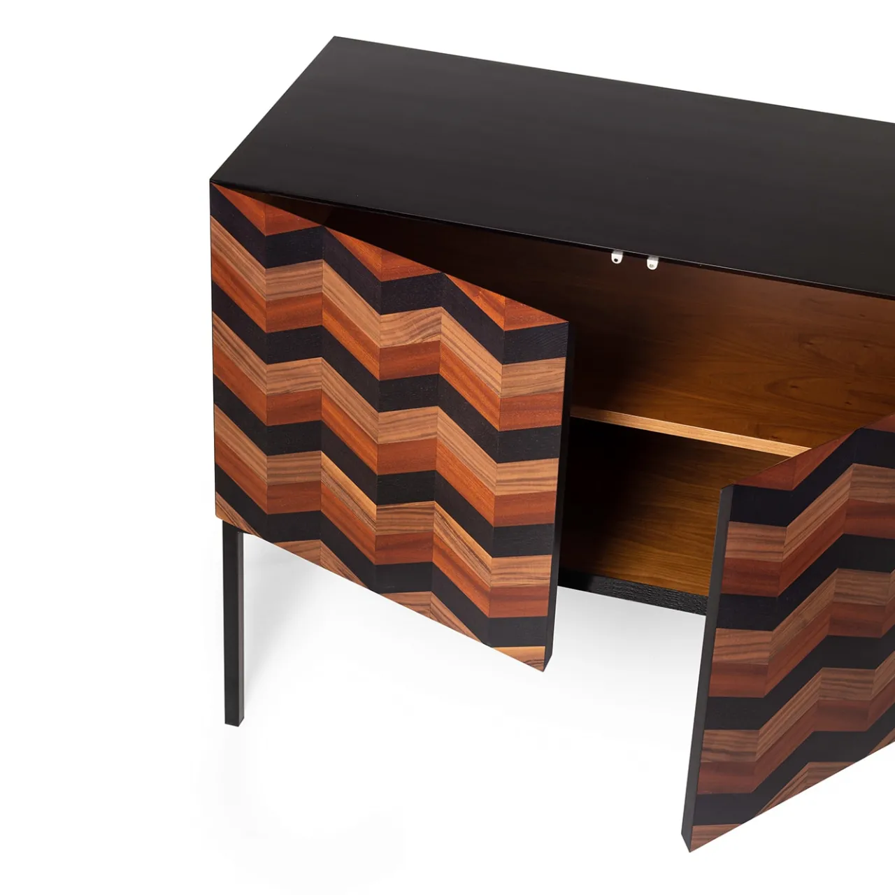 Questa spettacolare credenza, che prende il nome dalla parola italiana “marea”, è caratterizzata da un motivo ondulato che si ispira all’immagine sognante e affascinante di un tramonto sul mare. Abilmente lavorata a mano, è realizzata in frassino nero, noce canaletto, mogano, disponibile anche in frassino blu. Le gambe sottili e robuste in ferro laccato nero completano il pezzo. Consultare il Concierge per eventuali opzioni di personalizzazione.