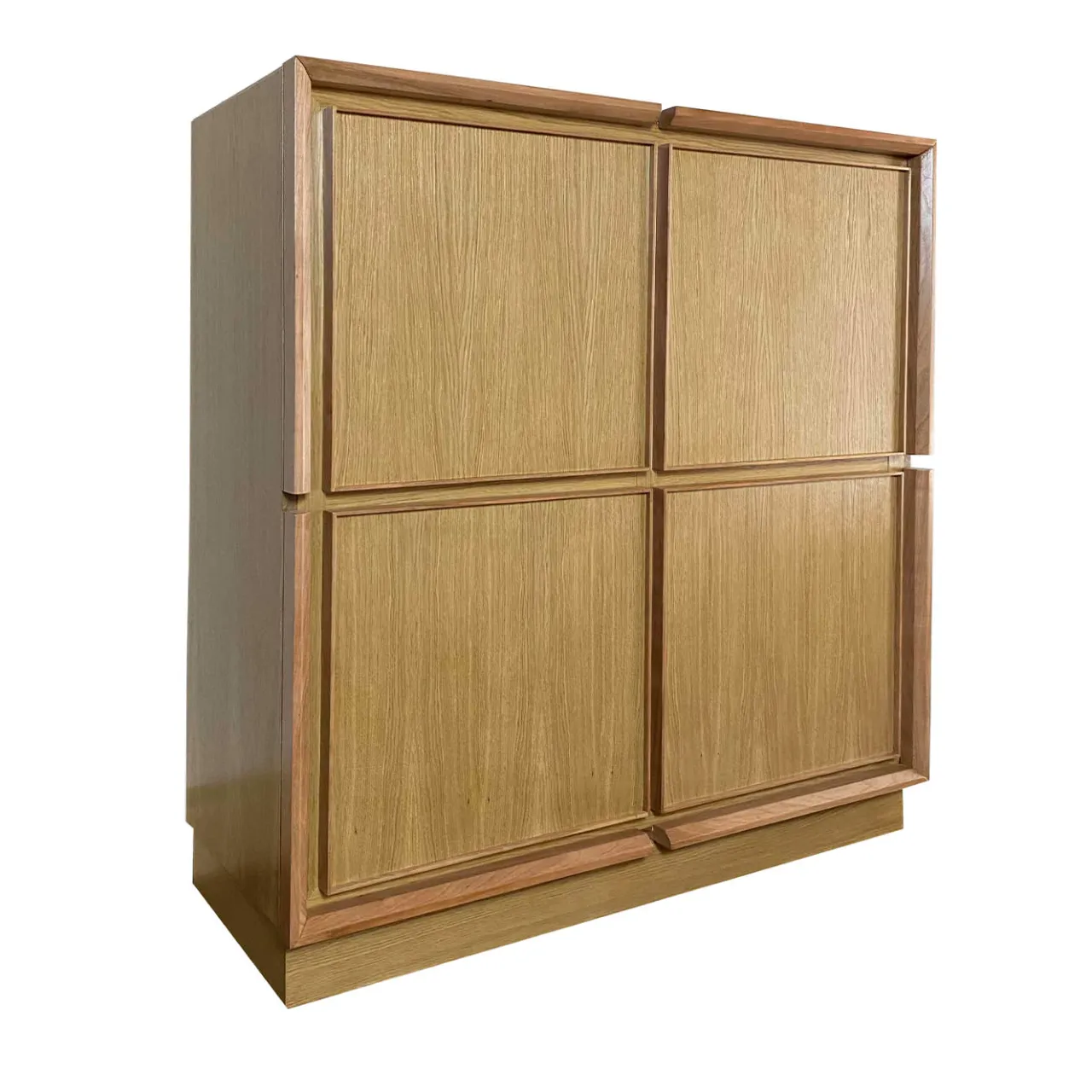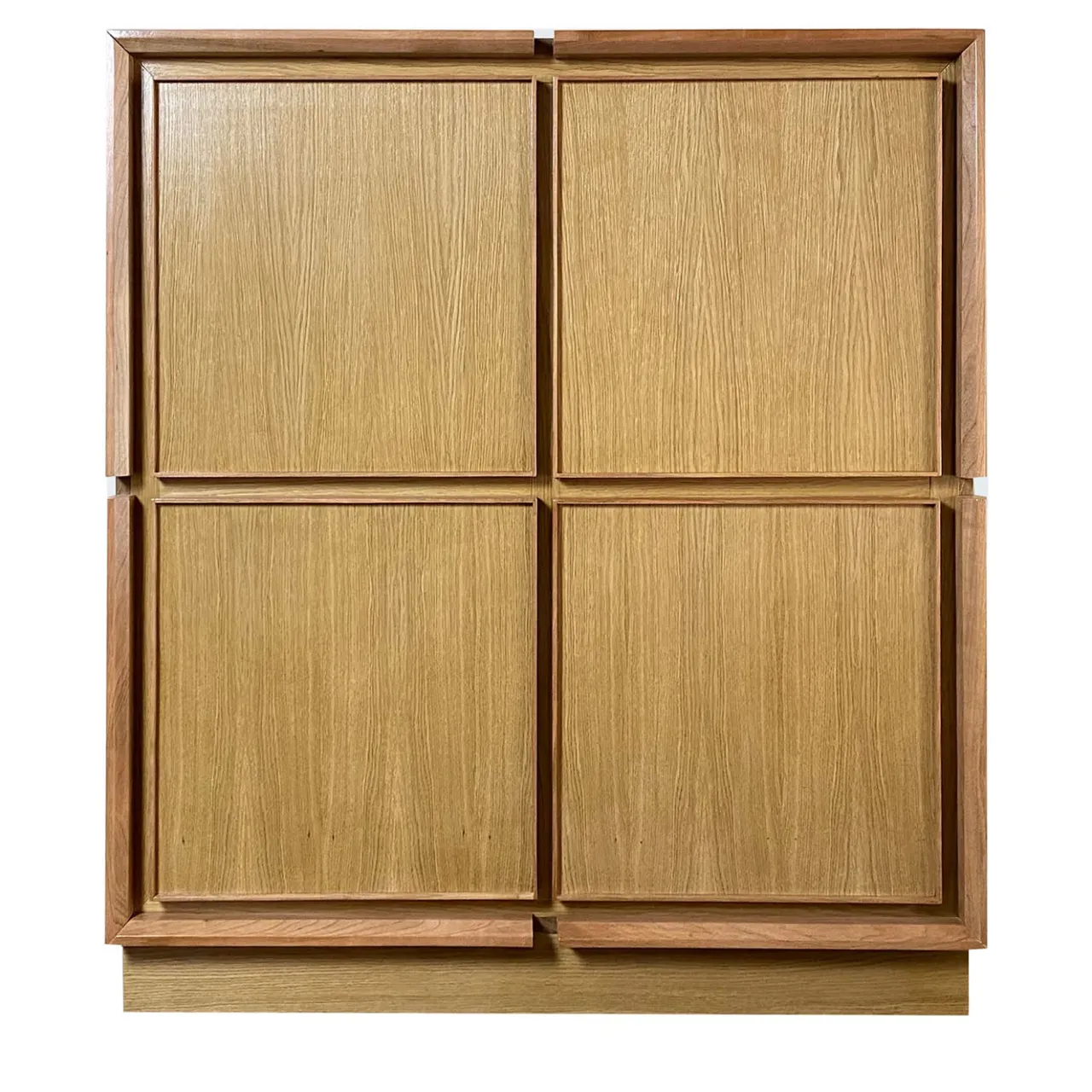 Esercizio di rigore geometrico, questa credenza in rovere massiccio emana il fascino di un gioiello artigianale di lunga durata. Quattro ante rivelano l’ampia unità interna, garantendo un’eccezionale capacità di contenimento, agevolata dalla presenza di più ripiani. Caratterizzato da un’audace base a zoccolo e da elementi lineari che esaltano le ante quadrate, il mobile è qui proposto nelle finiture noce e ciliegio. Si prega di esplorare le diverse varianti di legno con il Concierge.