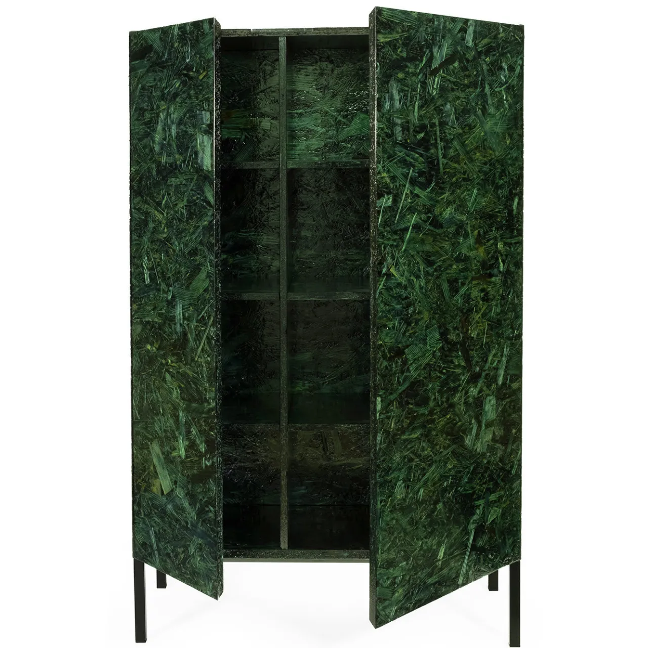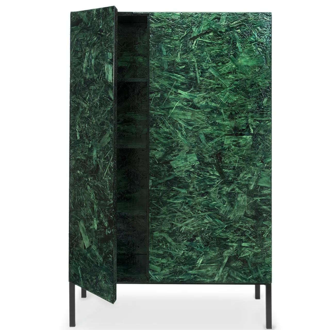 Con un design semplice e contemporaneo, questa credenza verde disegnata da Fabrizio Contaldo darà un tocco di classe alla vostra sala da pranzo o alla vostra zona giorno. Dotata di due ante a battente che si aprono su comodi ripiani interni, è realizzata interamente in OSB lucido con una base in metallo laccato nero opaco.