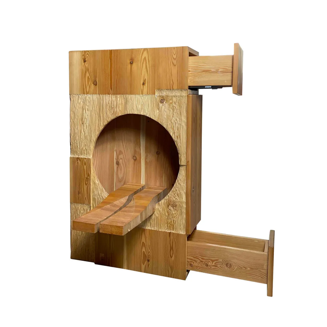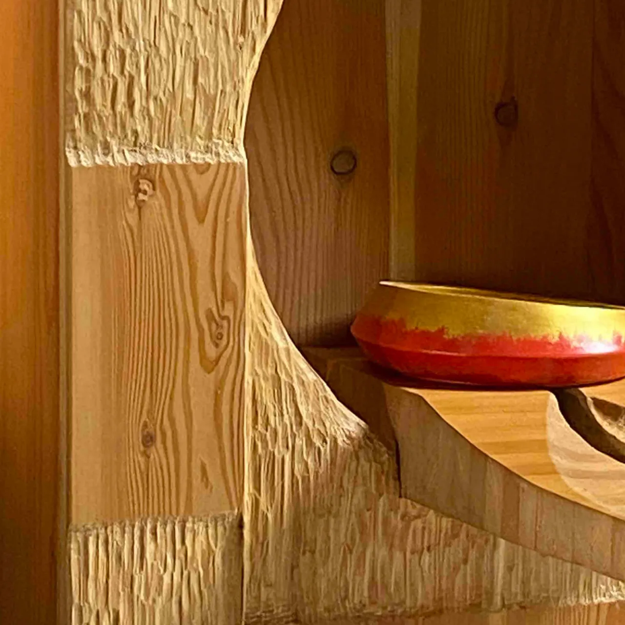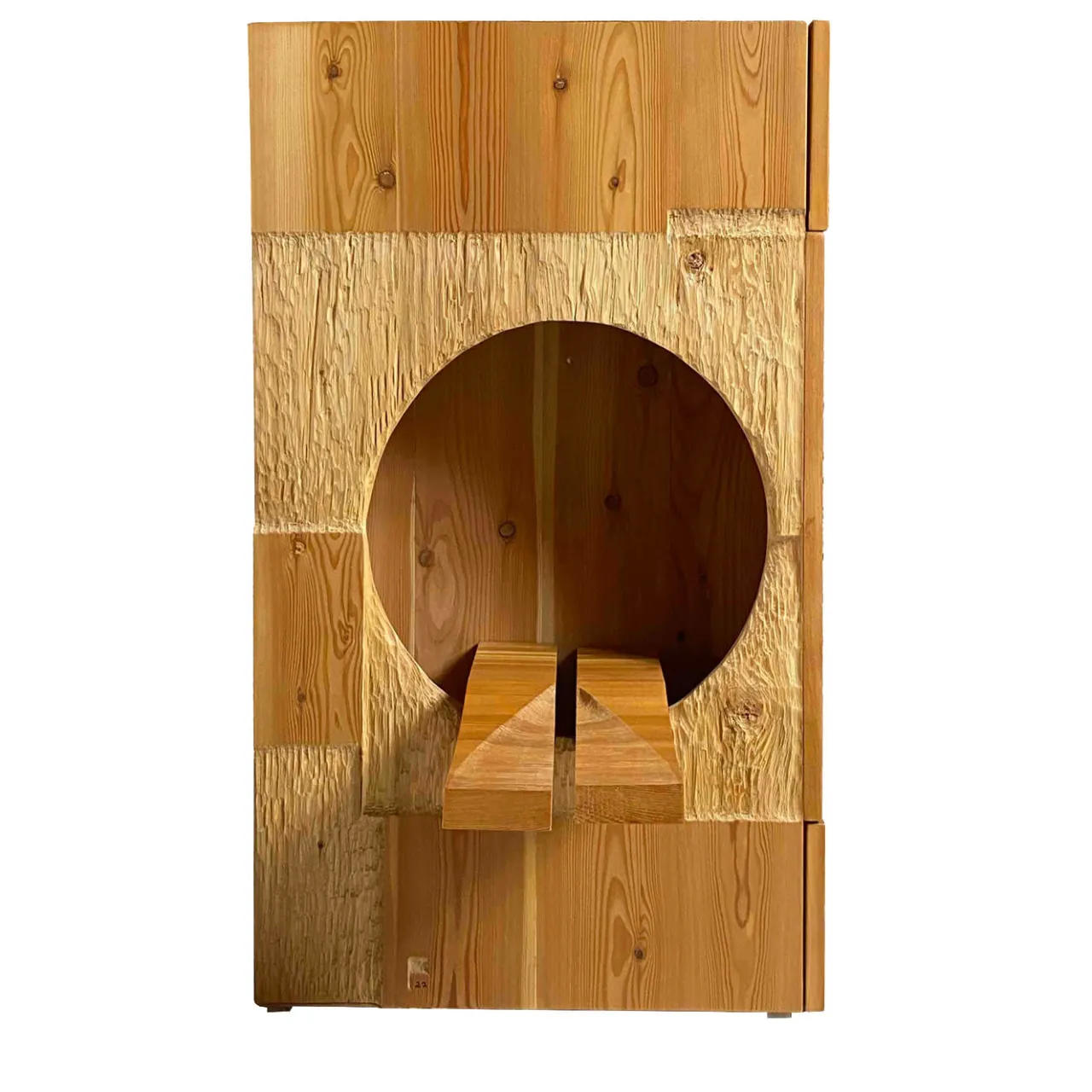 Sublime opera di artigianato che fonde arte e design in una forma unica, questa stupenda opera è un progetto del 2022 di Pietro Meccani. Realizzata a mano in larice europeo, presenta due cassetti laterali ed elementi scolpiti a mano. È infine decorata a mano ispirandosi ai dipinti a olio di Ferdinando Meccani degli anni ’60 e ’70. Questo pezzo appartiene a un’edizione limitata di 10 modelli numerati e può essere personalizzato nell’essenza del legno e nelle dimensioni.