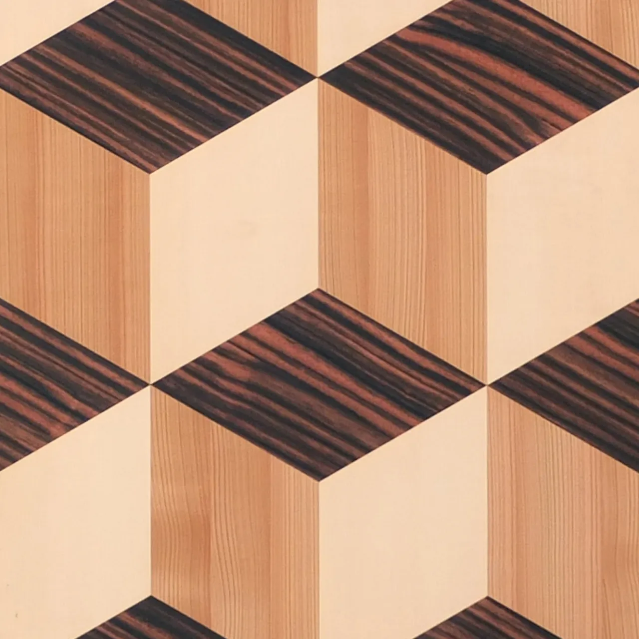 Disegnata dal centro di ricerca Morelato, questa credenza è realizzata con diversi tipi di legno per creare la prospettiva cubica di grande impatto visivo dei pannelli frontali, che ricorda l’arte rinascimentale. All’interno, lo spazio centrale è dotato di tre cassetti, mentre all’esterno i piedini in ottone aggiungono raffinatezza e un tocco moderno.