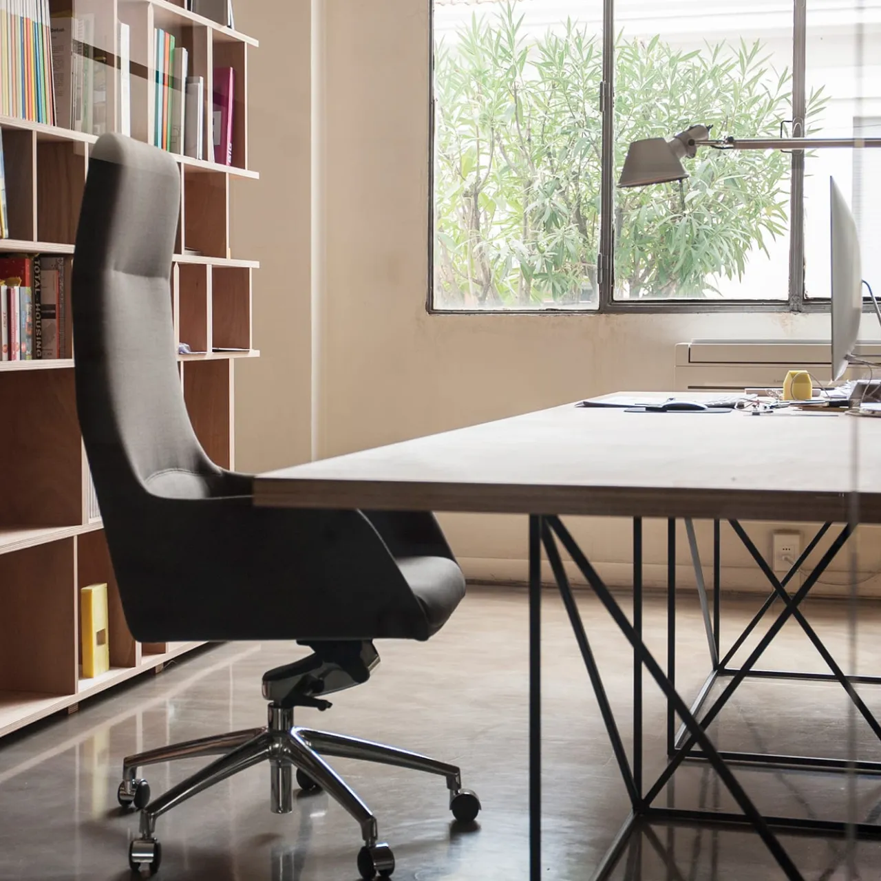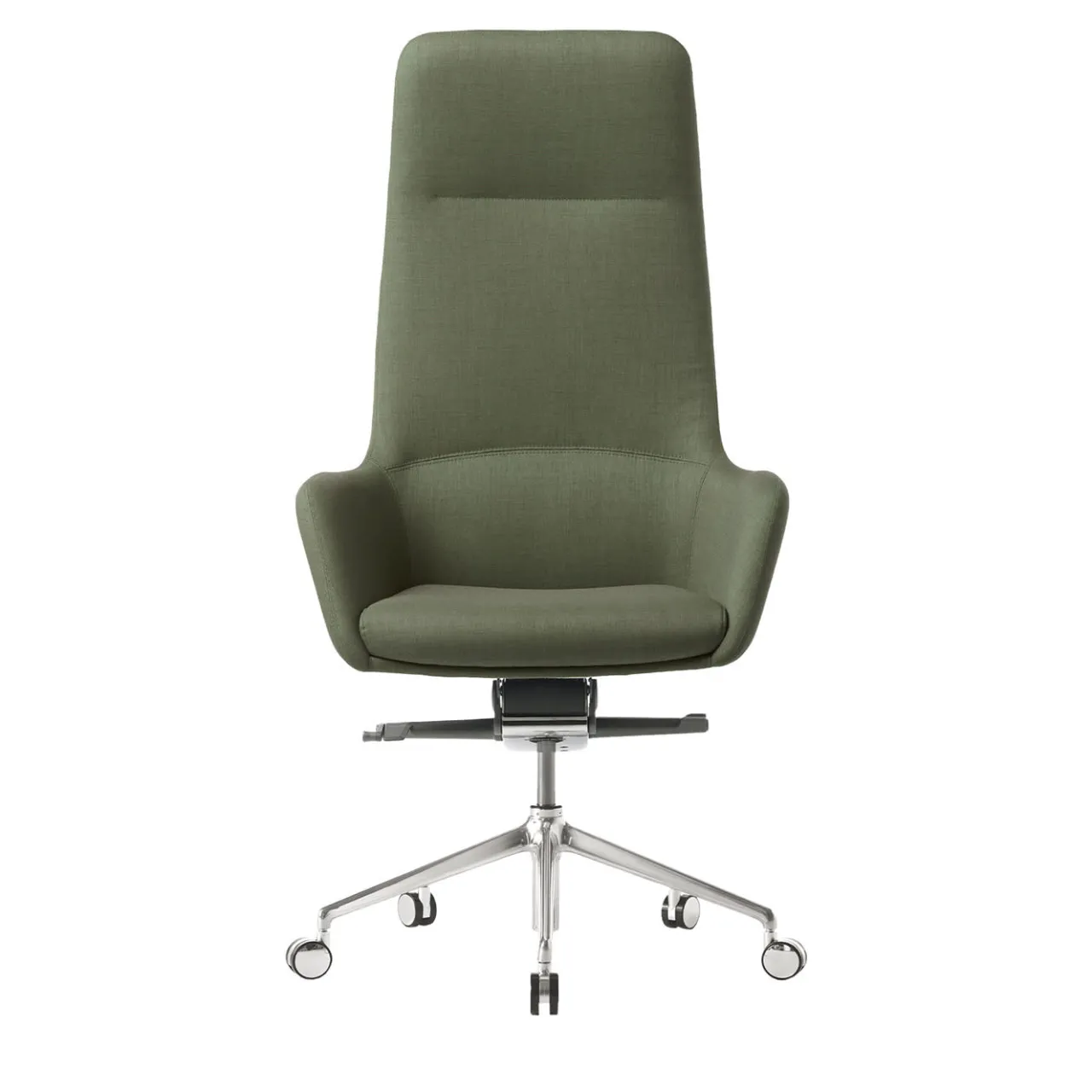 Questa elegante poltrona direzionale imbottita è caratterizzata da uno schienale alto e da una base a 5 razze, che può essere girevole e muoversi su e giù.