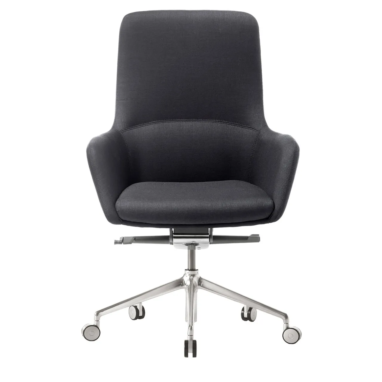 Questa elegante poltrona direzionale imbottita è caratterizzata da uno schienale medio e da una base a 5 razze, che può essere girevole e muoversi su e giù.