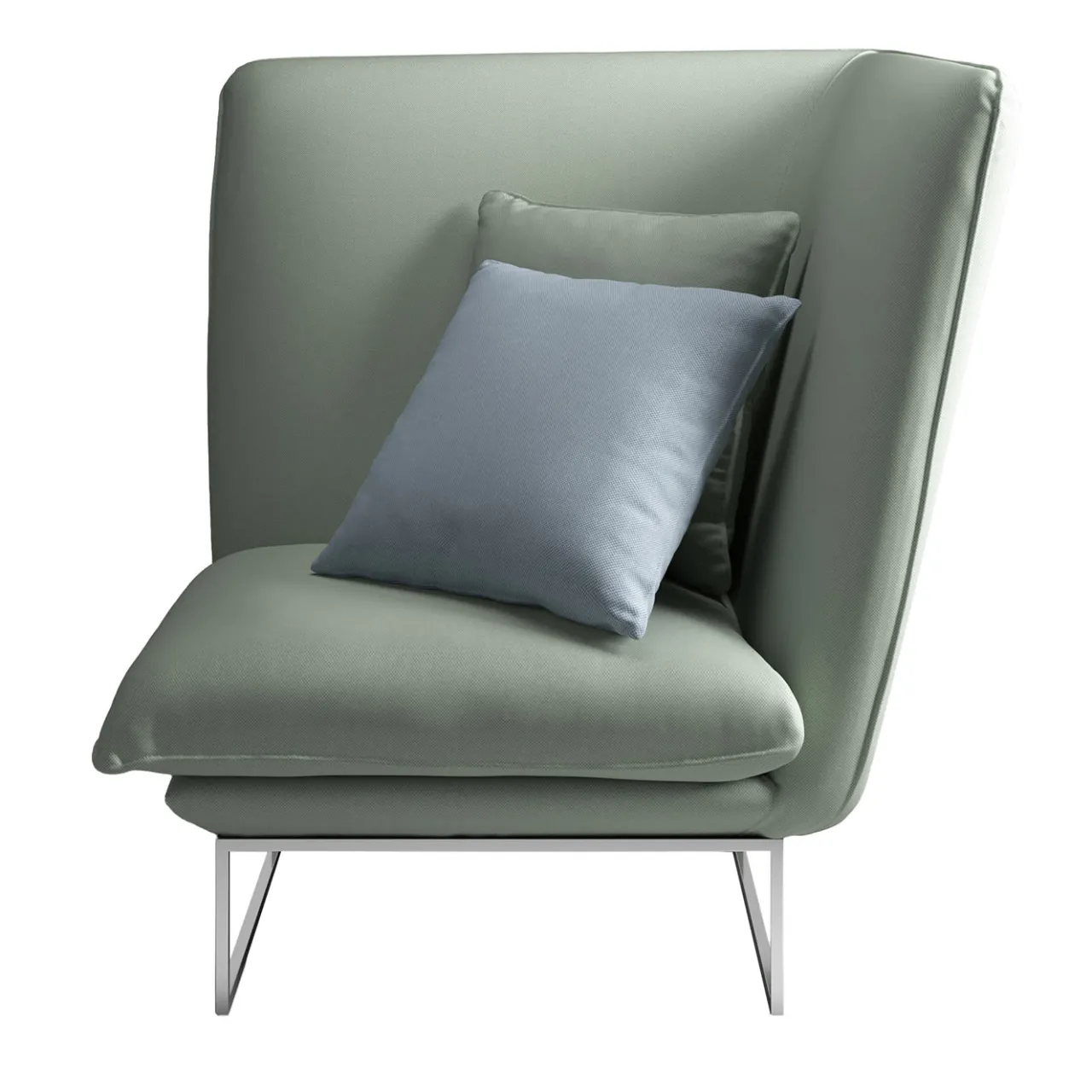 Questa preziosa poltrona progettata per un uso sicuro all’esterno invita a concedersi momenti di autentico relax abbracciati dalla sua maestosa silhouette angolare, riccamente imbottita e rivestita in un elegante tessuto beige sicuro per l’esterno e da due cuscini più piccoli. Da abbinare al pouf Ethos per amplificare il suo potenziale di comfort, si erge su una sottile e luminosa struttura in acciaio inox con finitura lucida.