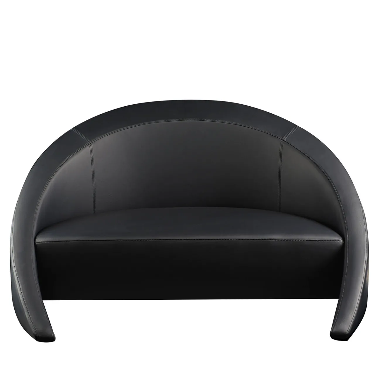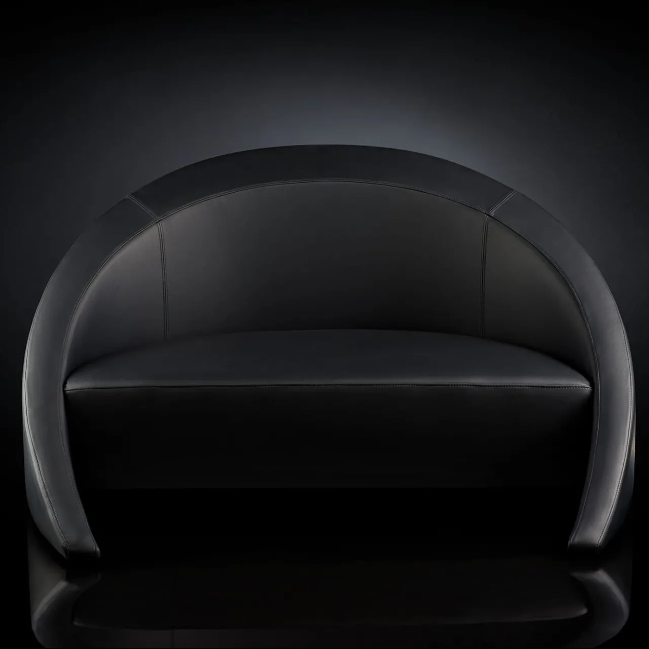 Testimonianza di uno stile moderno, questo divano vanta una forma sofisticata e singolare, ideale per godersi un buon libro in una giornata di pioggia o per completare una zona relax nella hall di un hotel. Realizzato in compensato, è imbottito in poliuretano espanso a densità multipla e rivestito in pelle nera con eleganti cuciture.