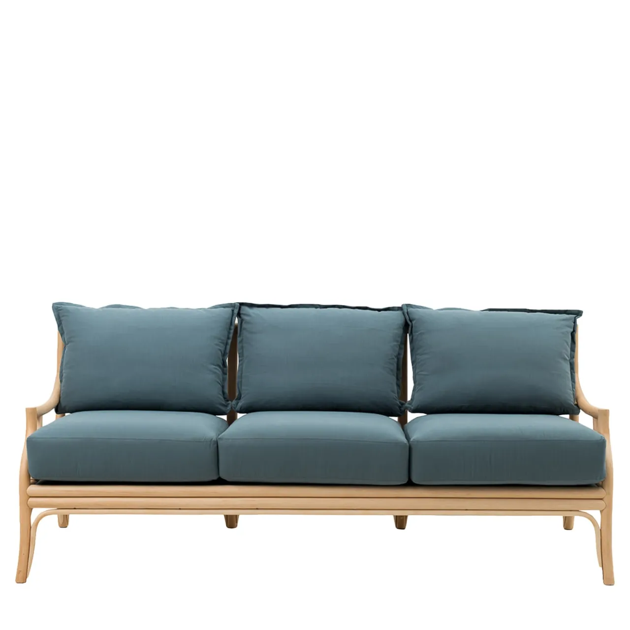 Questo elegante divano è realizzato in uno degli ultimi laboratori in Italia dove il rattan viene ancora piegato a mano. Intramontabile e raffinato, sfoggia cuscini di seduta e di schienale in tessuto sfoderabile color verde acqua, affiancati dai fianchi dolcemente inclinati della struttura. Gli accessori Otton arricchiscono le giunture del telaio, ma l’occhio è sempre catturato dalla finitura naturale del rattan. È disponibile una controparte poltrona; per maggiori dettagli, consultare il catalogo Artemest.