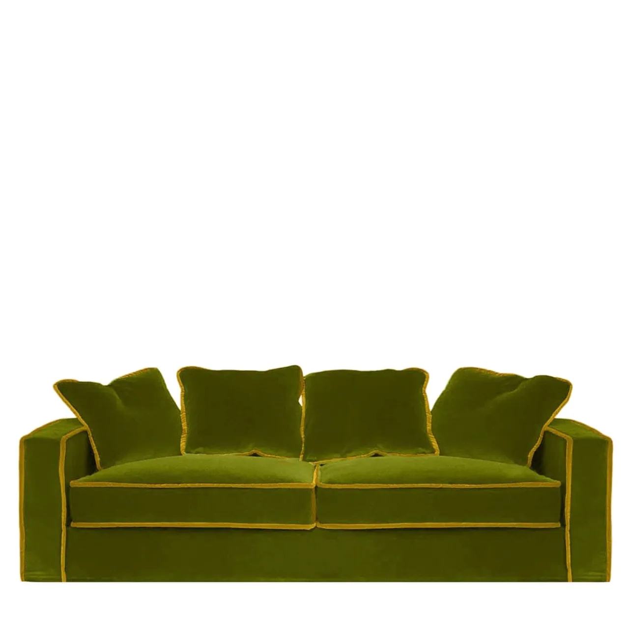 Questo divano lussuoso e generoso è liscio al tatto e ultra confortevole. I sedili profondi e il tessuto morbido rendono l’accomodarsi un vero piacere. Il profilo angolare di Rafael conferisce a questo stile revival un tocco di modernità, mentre i cuscini in feltro aggiungono comfort e un affascinante contrasto. Questo modello è caratterizzato da un’accattivante combinazione di velluto verde oliva con finiture in velluto color oro. Biosofa è l’unico produttore al mondo di divani 100% naturali e privi di plastica.
