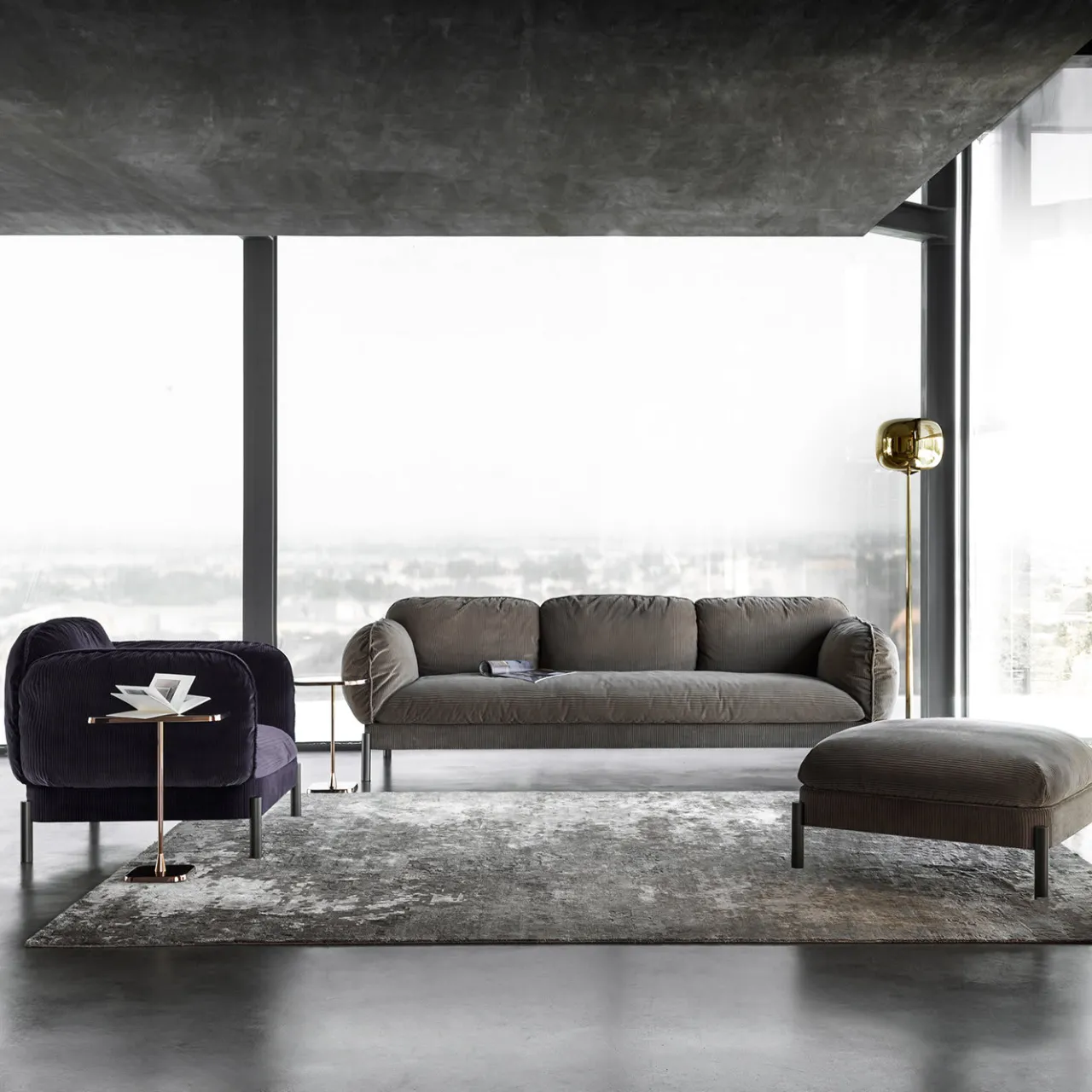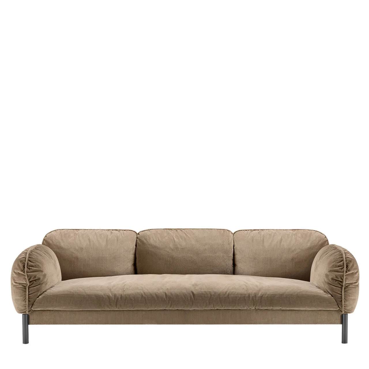 Elegante e moderno, ma ispirato a una forma classica, questo divano a tre posti sarà una preziosa aggiunta a un interno contemporaneo, accogliendo chiunque con la sua silhouette confortevole e avvolgente. Poggiato su piedi cilindrici satinati neri, il pezzo è morbidamente imbottito e interamente rivestito con un tessuto marrone strutturato e vellutato, disponibile per la personalizzazione, si prega di chiedere al Concierge per ulteriori dettagli. Per il mercato statunitense, contattare il Concierge per i tessuti certificati CAL TB 117.