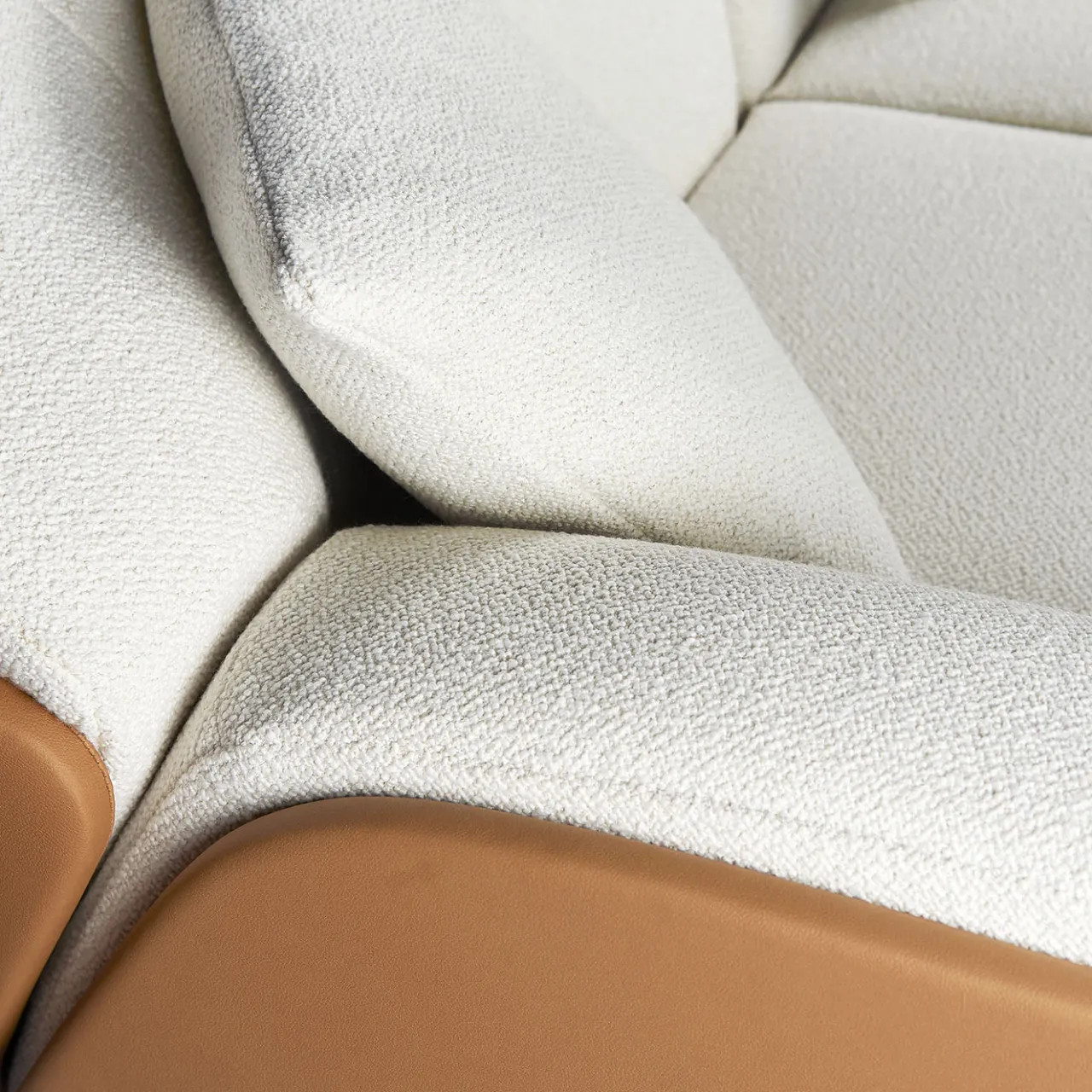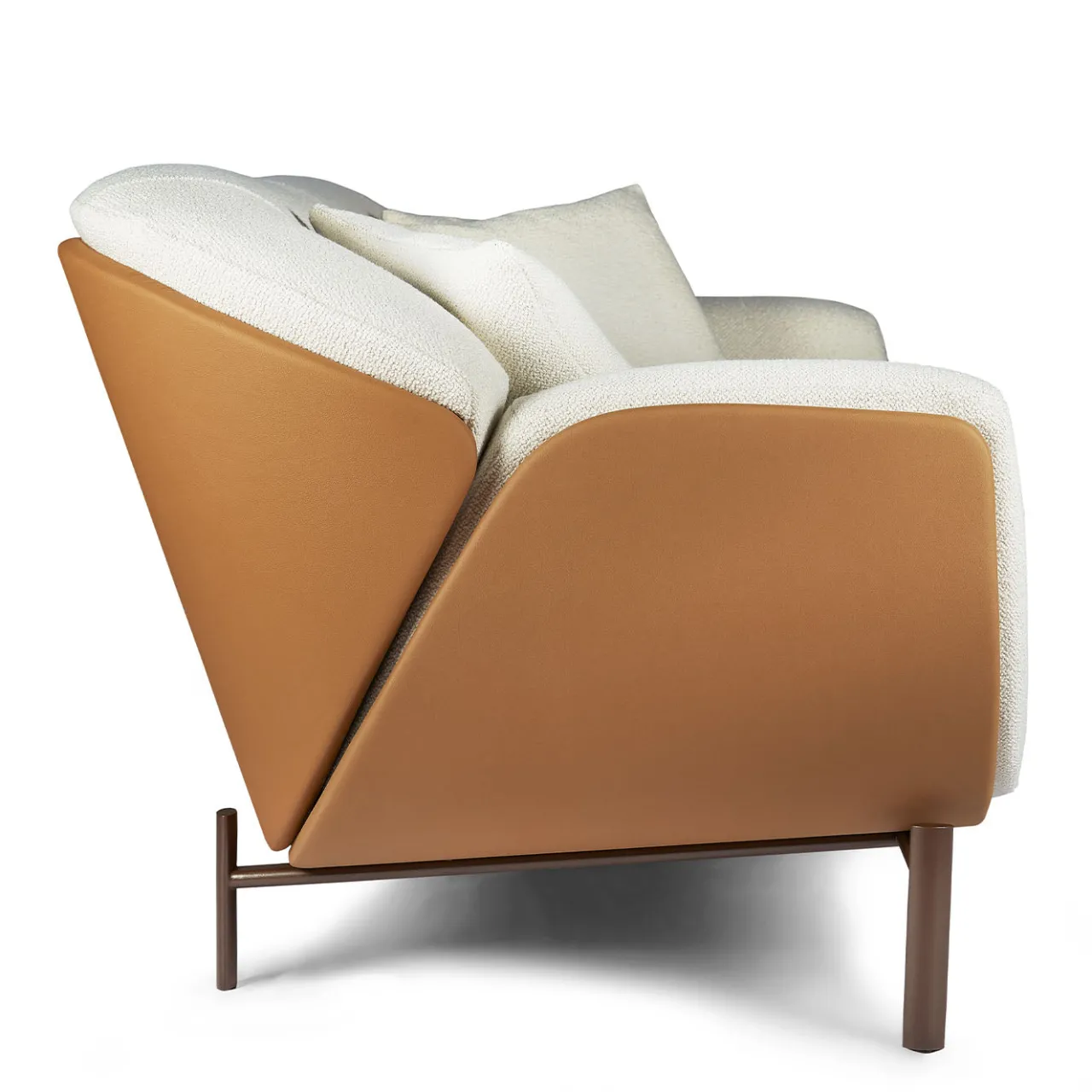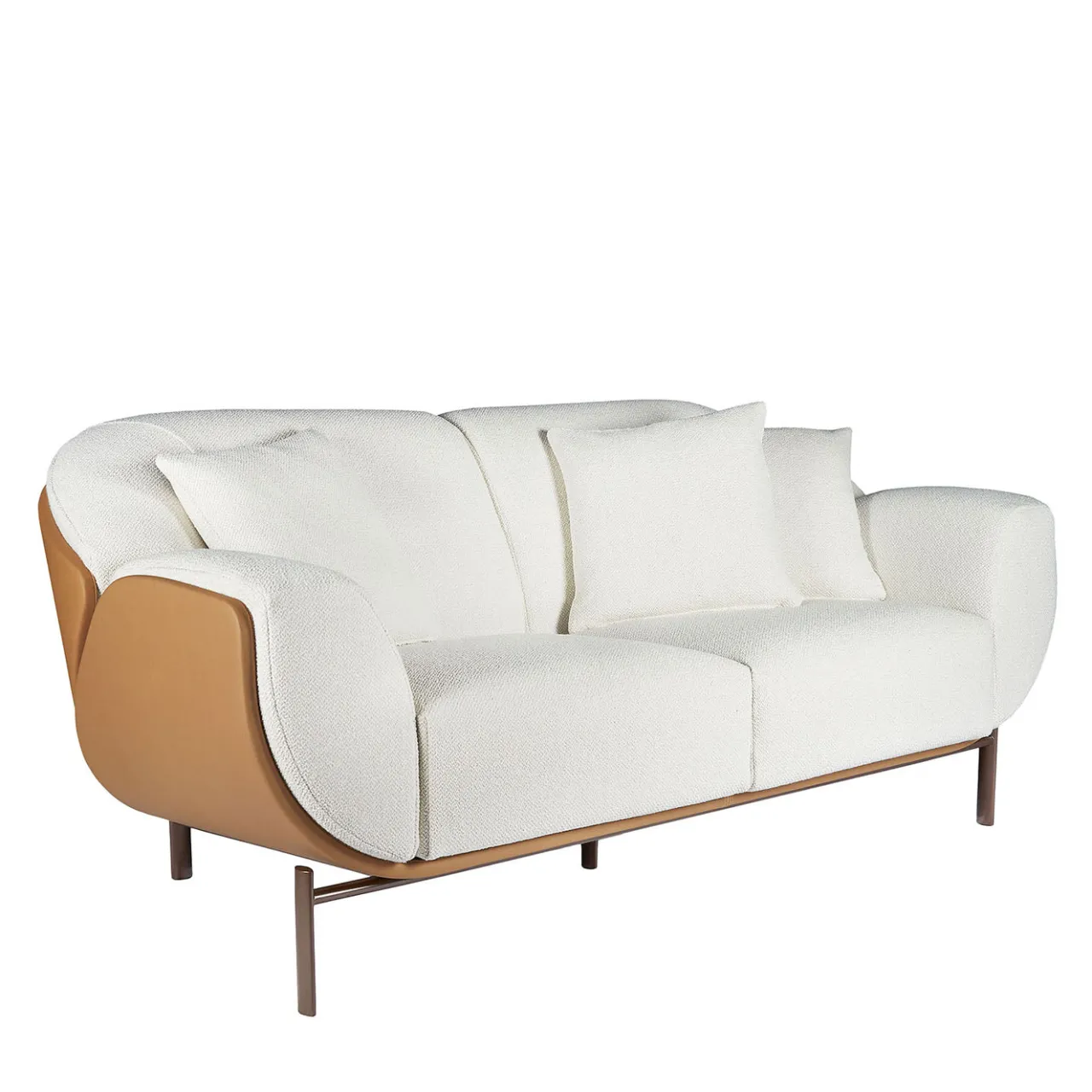 Il divano a due posti Baida’ presenta curve e torsioni lisce, ispirate alle dune, che creano una silhouette distintiva. I cuscini imbottiti offrono comfort nell’intera area di seduta, incorniciati da una scocca in similpelle elegante che contrasta con la morbida tappezzeria. Il divano è elevato su una base in acciaio verniciato a polvere con gambe sottili, offrendo un’estetica moderna. Progettato da Maryam Al Suwaidi, questo pezzo unisce struttura raffinata e morbidezza invitante, pensato per spazi abitativi contemporanei.