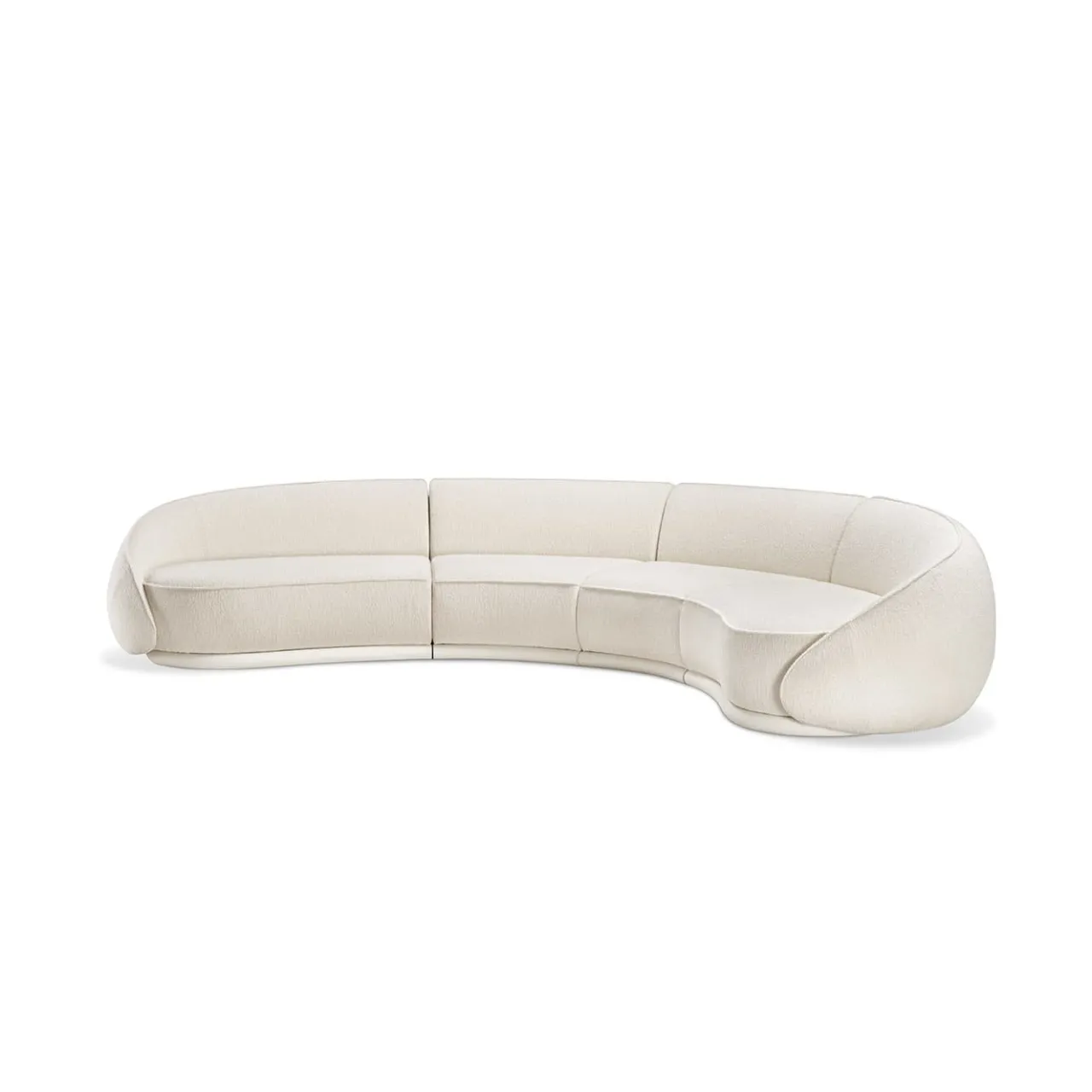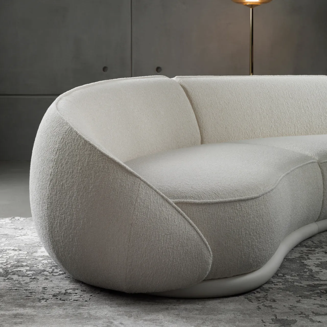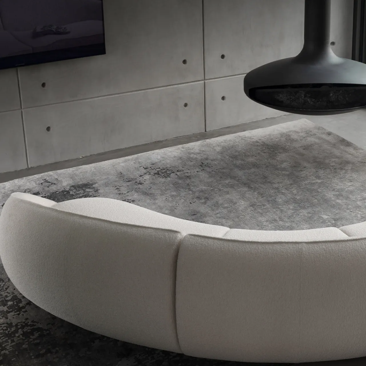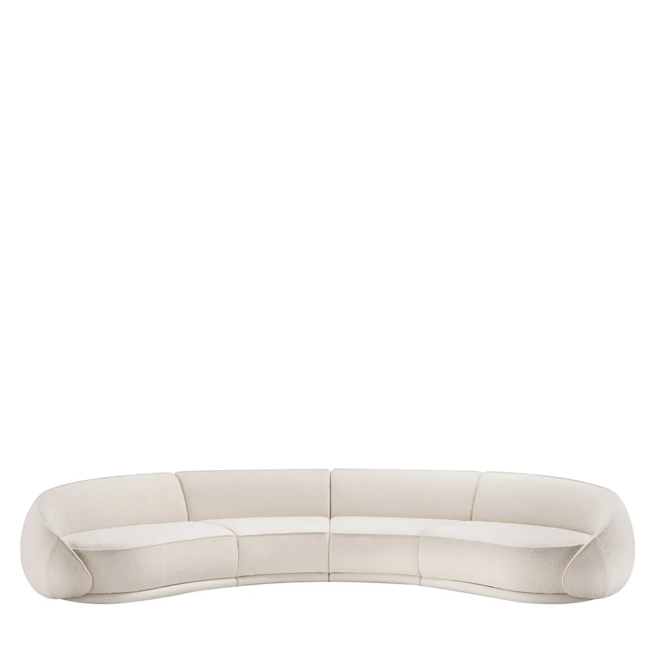 L’artista Lorenza Bozzoli ha voluto concretizzare la sensazione di un caldo abbraccio in questo elegante divano modulare. I quattro moduli di seduta che lo compongono sono disposti in modo da sottolineare ulteriormente la sua ispirazione romantica, suggellata dal profilo superiore del divano che si inclina dolcemente ai lati per dare forma ai braccioli. Il pregiato tessuto bianco Clunis avvolge i suoi volumi morbidi. Per il mercato statunitense, si prega di contattare il Concierge per i tessuti certificati CAL TB 117.