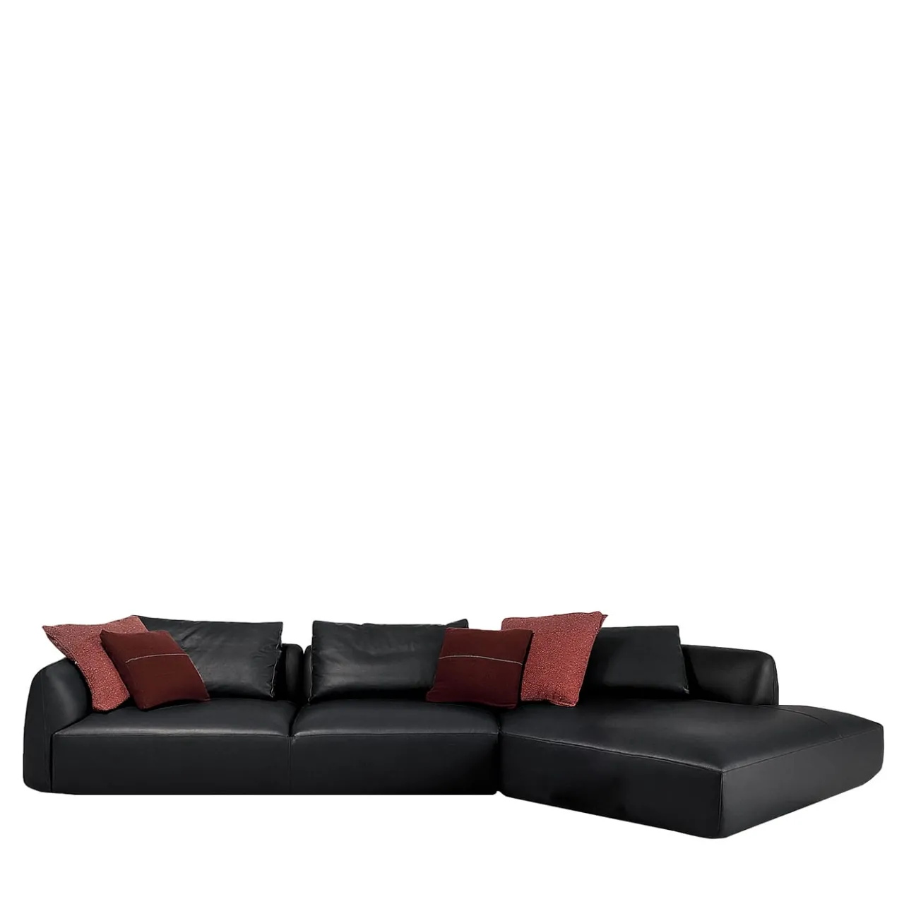 Un’atmosfera lussuosa, accennata dal pregiato rivestimento in pelle (cat. extra col. 40129) in una regale tonalità bordeaux, definisce questo divano modulare in peluche. Proposto in una versione angolare con terminale aperto, il design è caratterizzato da linee pulite la cui sobrietà è controbilanciata dall’indulgenza dell’imbottitura interna. Il comfort è massimizzato dai cuscini dello schienale e dalla generosa profondità della seduta. I cuscini decorativi sono inclusi.