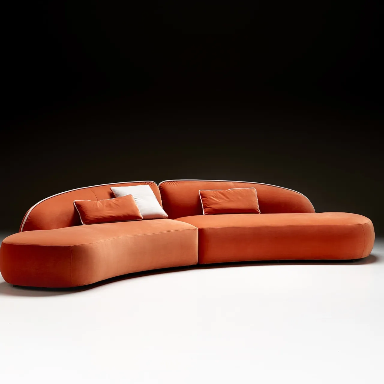 Un divano modulare dalle forme avvolgenti e sinuose: Erasmo è una perfetta sintesi di linee classiche e moderne, elegantemente sottolineate dalla cordonatura del bracciolo che segue con discrezione la composizione. La morbidezza dei tessuti accoglie la seduta, resa ancora più invitante dalla forma deliziosamente curva, che abbraccia le conversazioni più private. La sapiente modularità di Erasmo permette infinite combinazioni per esprimere al meglio qualsiasi ideale di comfort raffinato.