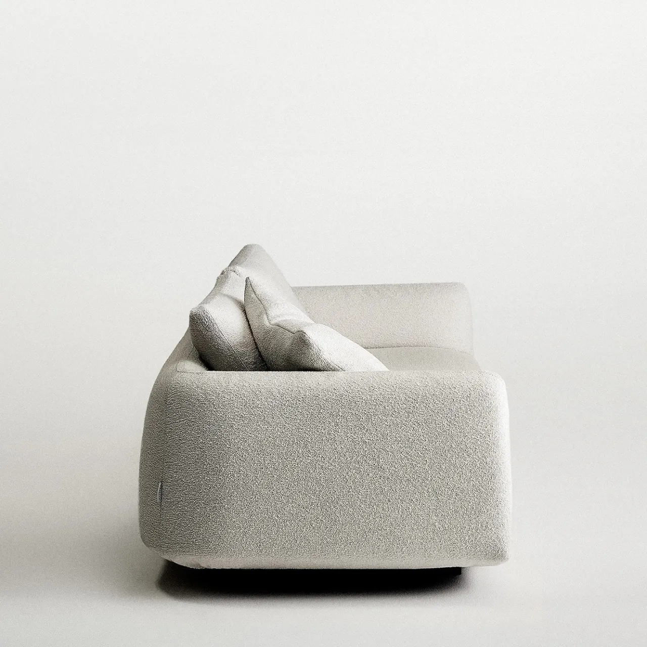 L’indulgenza nell’imbottitura e nelle linee rigonfie trasuda comfort in questo elegante divano progettato dalla coppia di creativi Ludovica e Roberto Palomba. Il rivestimento in tessuto bouclé bianco (Barnum/1) che avvolge interamente i suoi volumi voluminosi è responsabile della piacevole sensazione tattile che lo contraddistingue. Audace e raffinato, è disponibile in diverse composizioni modulari, per le quali si prega di informarsi presso il Concierge. I cuscini decorativi sono inclusi.