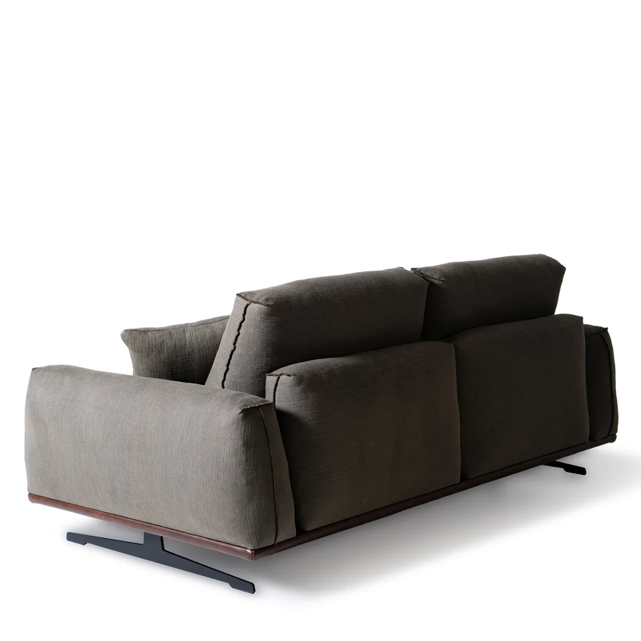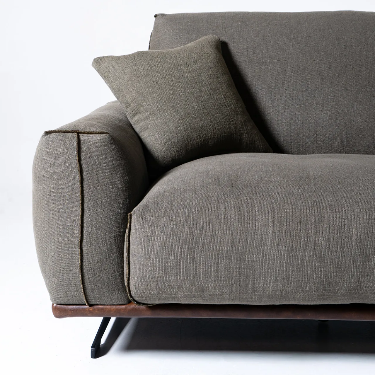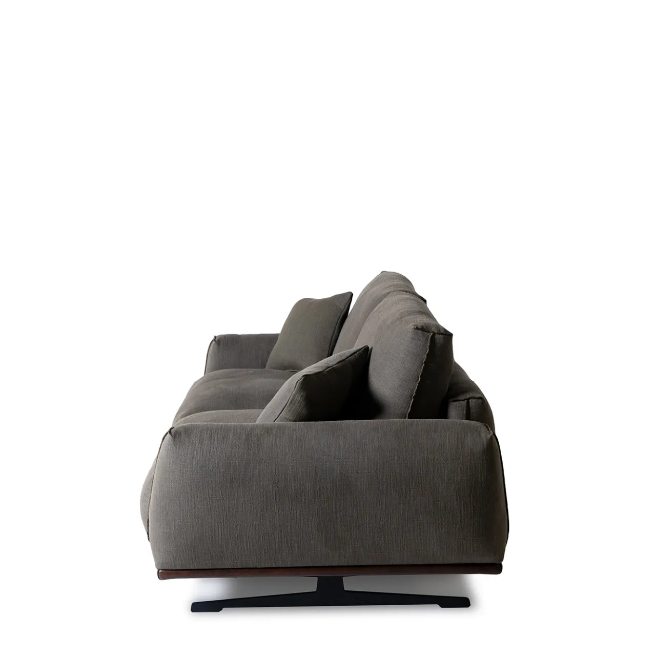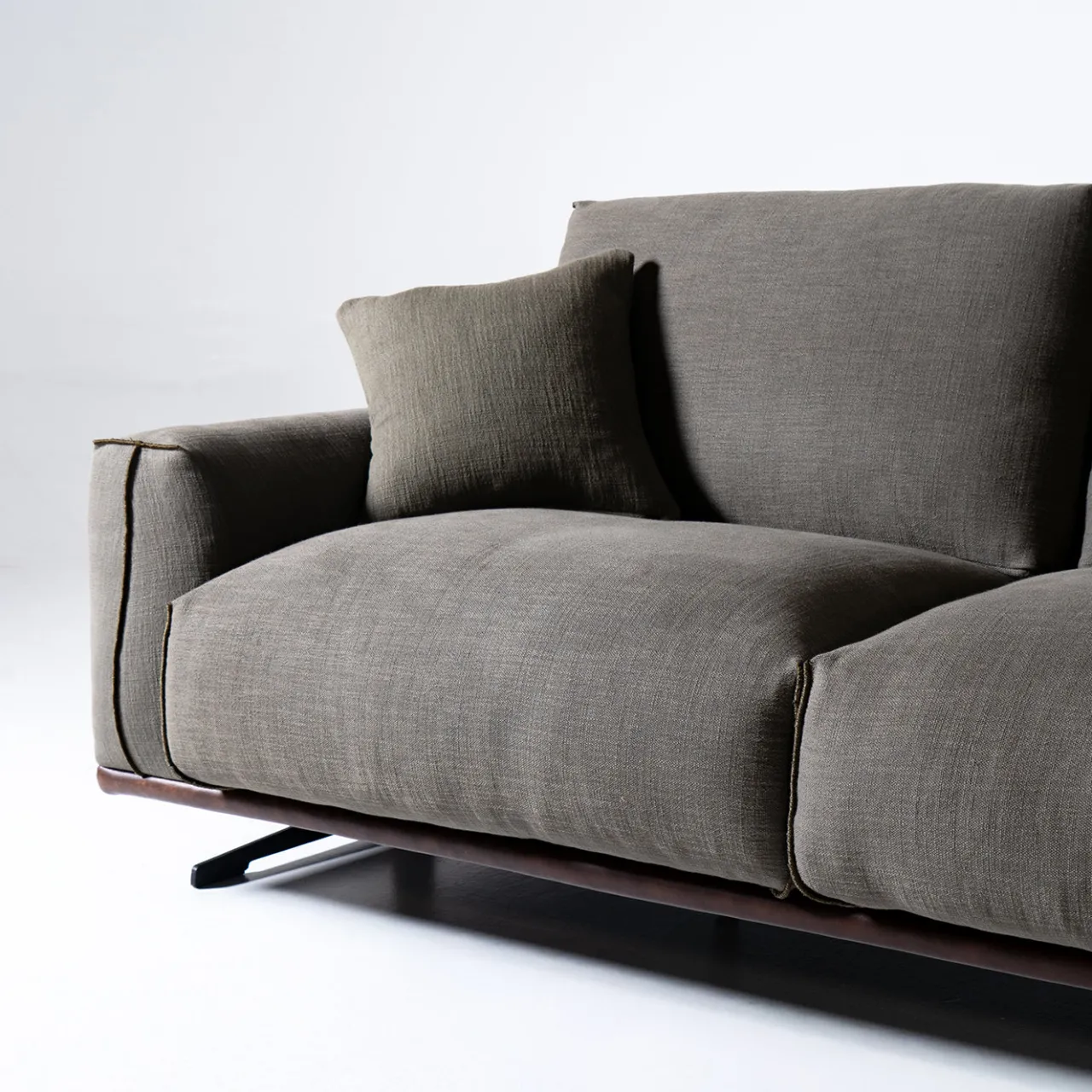 Il divano Boboli è l’equilibrio perfetto tra comfort e leggerezza. Le sue forme morbide e accoglienti, sorrette da eleganti slitte, creano un affascinante contrasto tra solidità e ariosità. Progettato per un relax totale, è imbottito con strati di poliuretano a densità differenziata e piuma d’oca certificata, per una sensazione di avvolgente morbidezza. Rivestito in un raffinato tessuto grigio scuro (Suvereto cat. Extra) con base in pelle marrone, è disponibile in tre dimensioni. Offre un’ampia scelta di coperture sfoderabili, personalizzabili anche in tessuti ecologici. Per ulteriori informazioni, si prega di contattare il Concierge. Cuscini non inclusi.