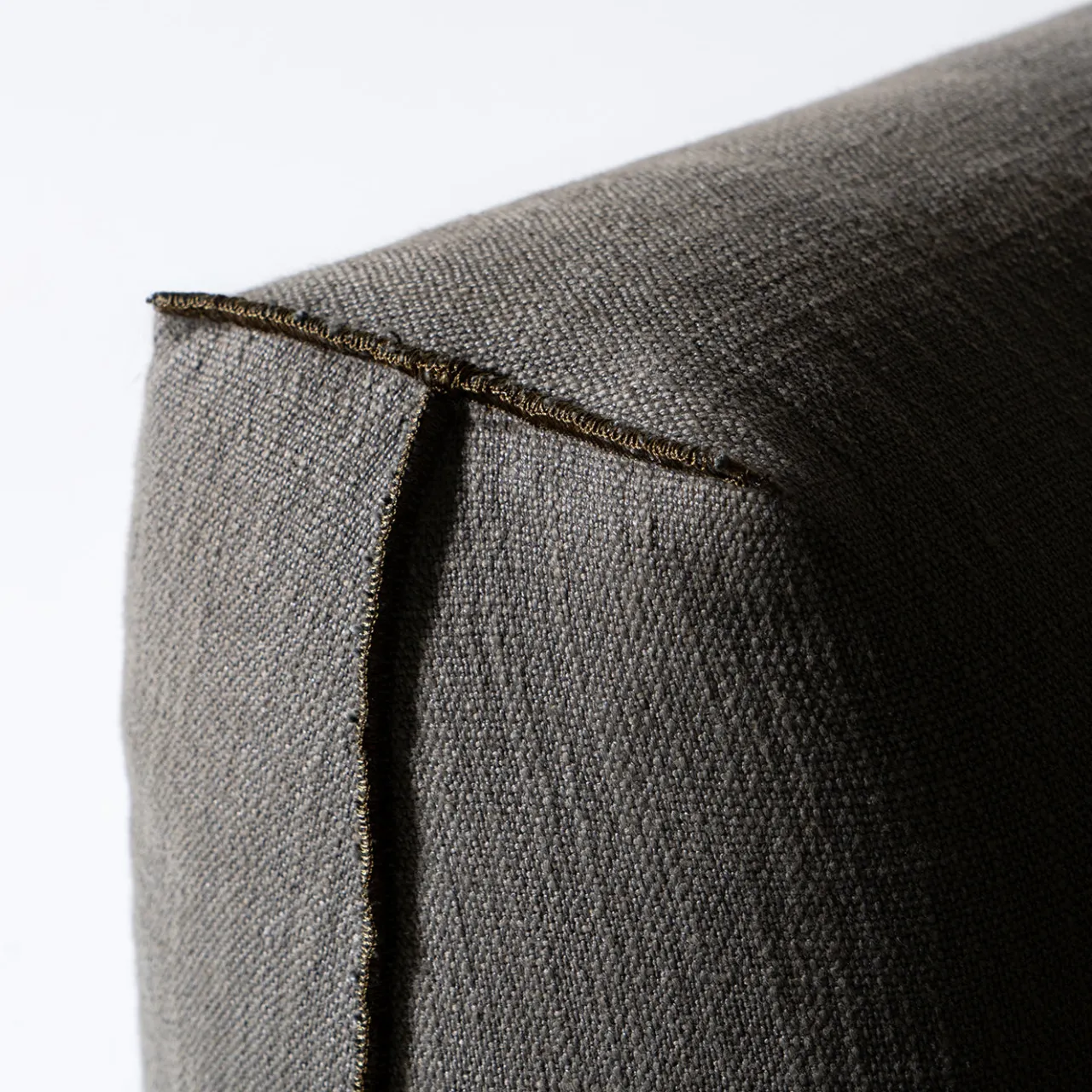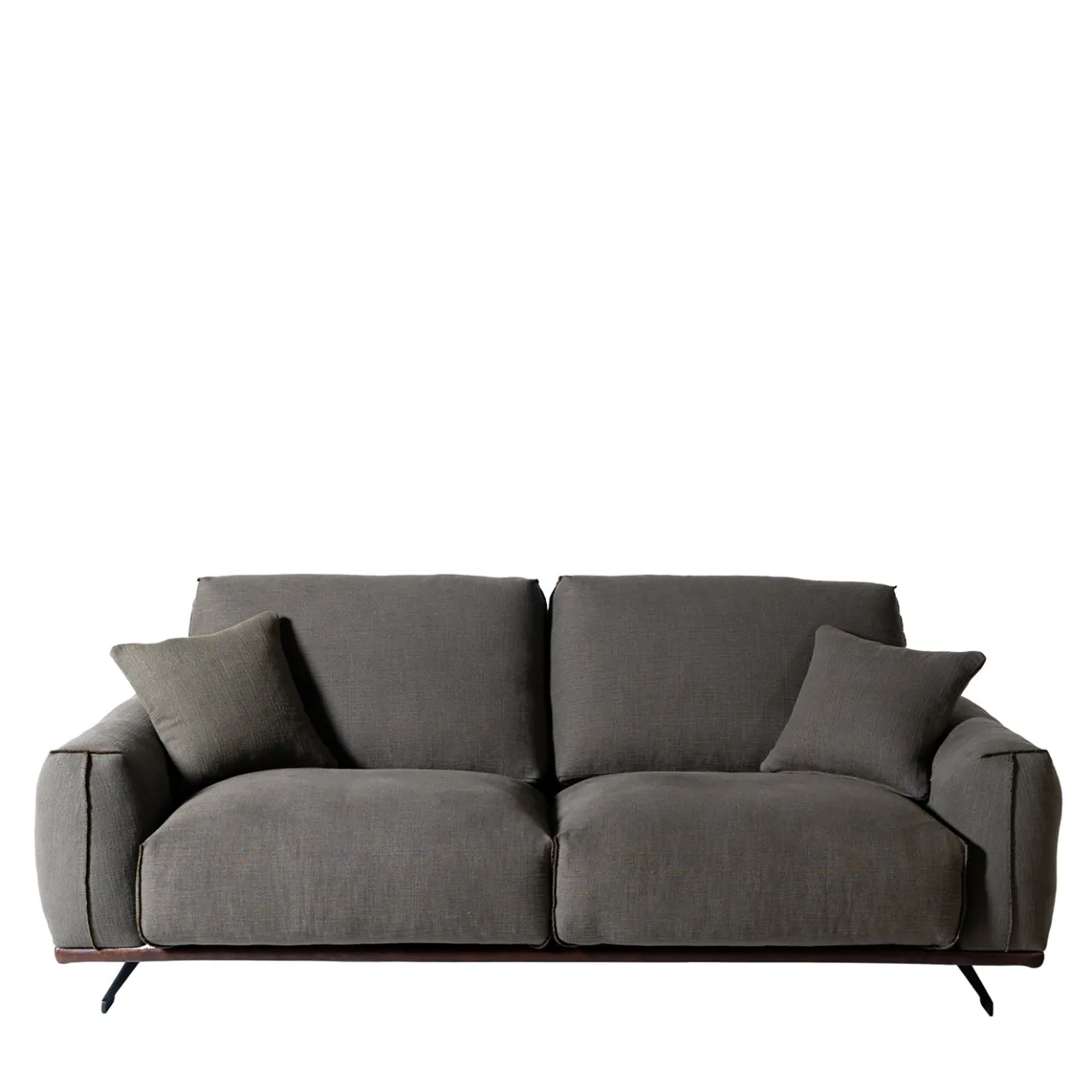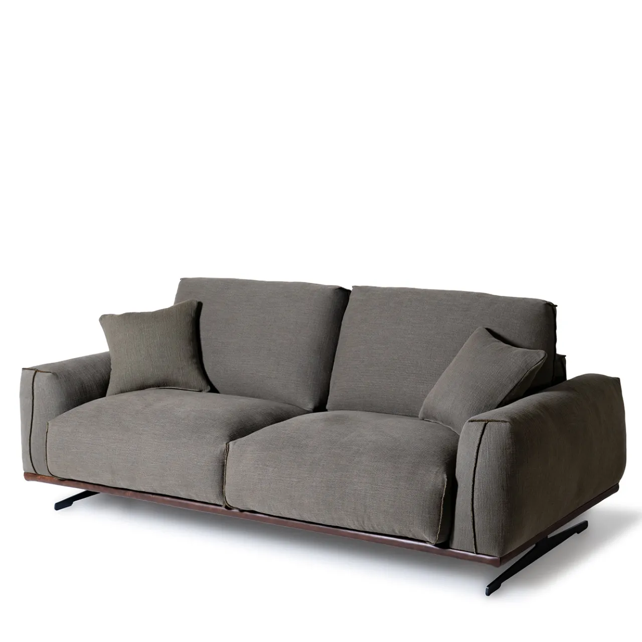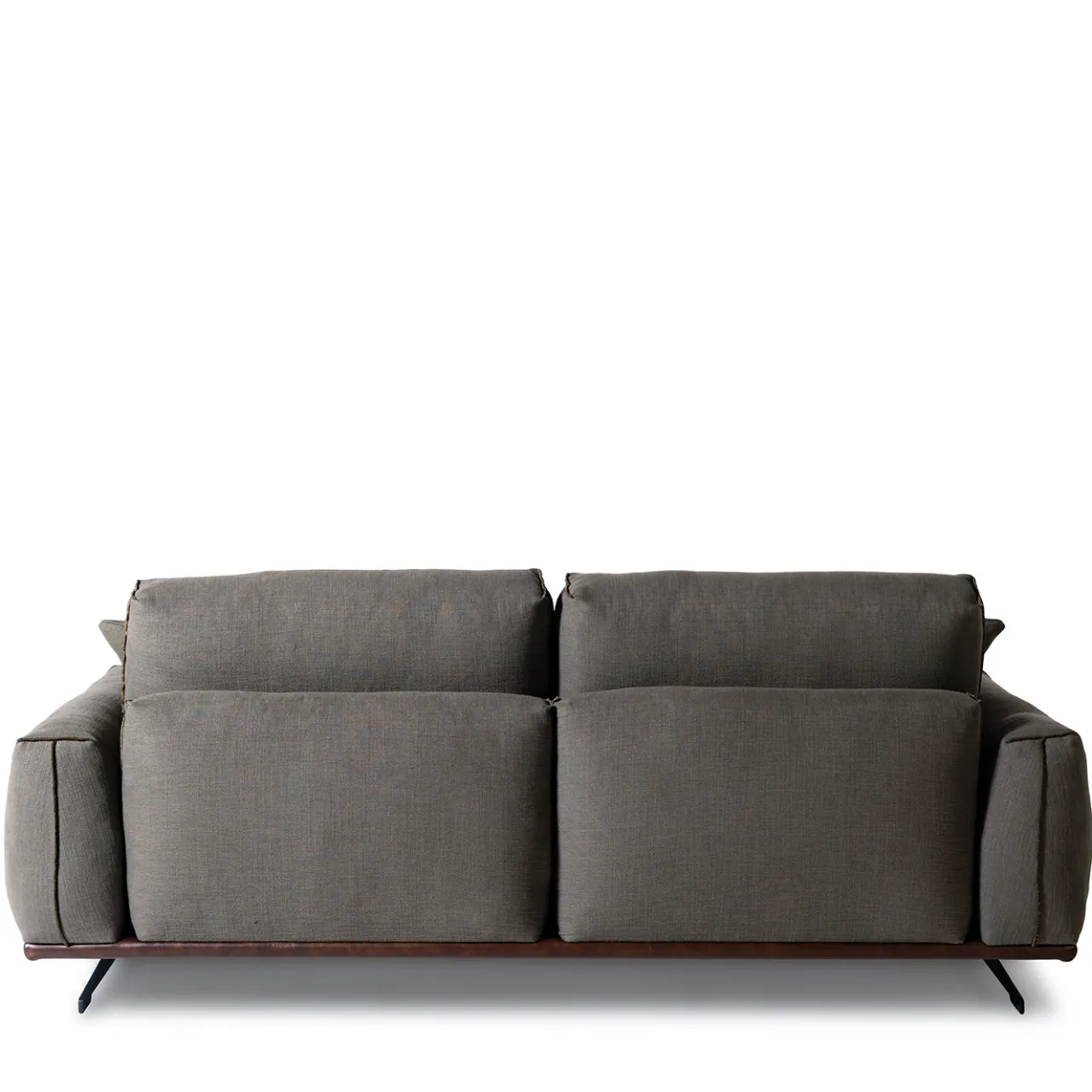 Il divano Boboli è l’equilibrio perfetto tra comfort e leggerezza. Le sue forme morbide e accoglienti, sorrette da eleganti slitte, creano un affascinante contrasto tra solidità e ariosità. Progettato per un relax totale, è imbottito con strati di poliuretano a densità differenziata e piuma d’oca certificata, per una sensazione di avvolgente morbidezza. Rivestito in un raffinato tessuto grigio scuro (Suvereto cat. Extra) con base in pelle marrone, è disponibile in tre dimensioni. Offre un’ampia scelta di coperture sfoderabili, personalizzabili anche in tessuti ecologici. Per ulteriori informazioni, si prega di contattare il Concierge. Cuscini non inclusi.