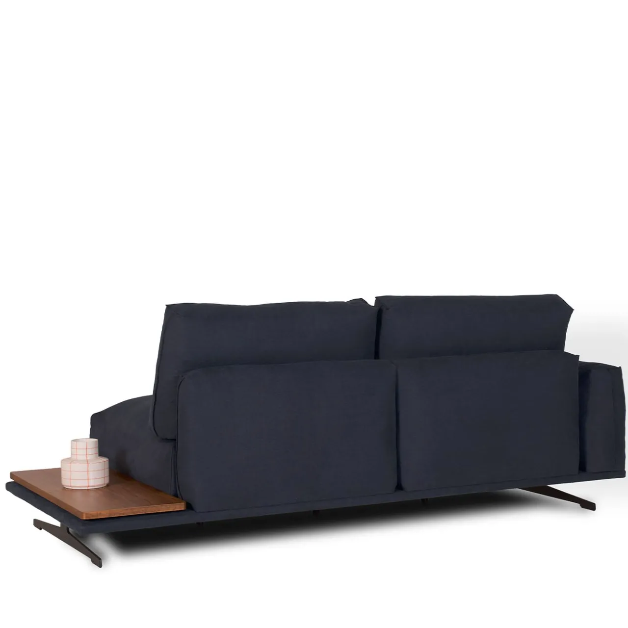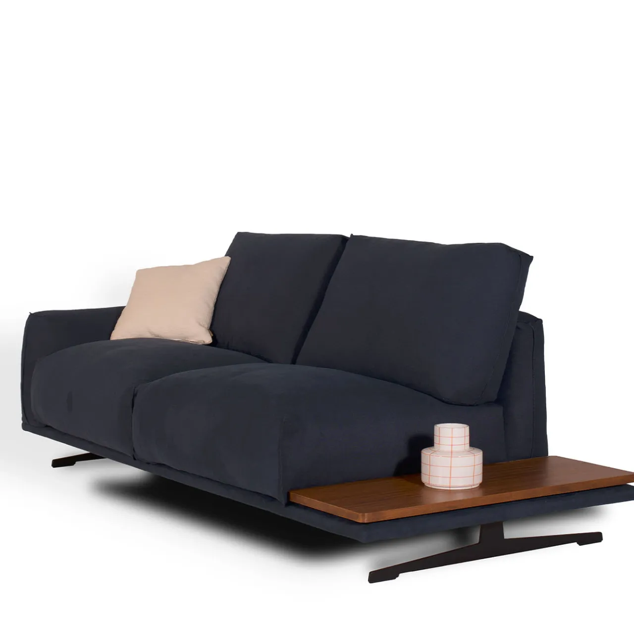 La funzionalità incontra l’eleganza contemporanea in questo divano modulare con tavolino integrato. Poggiato su eleganti gambe a slitta, sembra fluttuare, esaltando il contrasto tra il suo rivestimento blu intenso e la struttura di supporto in legno. L’ampia cuscinatura, l’imbottitura in poliuretano a densità multipla e i poggiatesta opzionali garantiscono un comfort ergonomico. Il tavolino, disponibile in diverse finiture, offre un pratico piano d’appoggio mantenendo l’estetica raffinata del divano. I cuscini non sono inclusi.