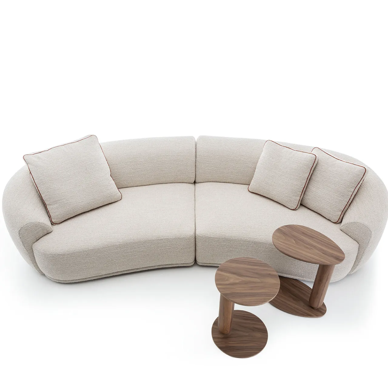 Il divano Bond presenta una struttura in legno massello con cinghie elastiche che sostengono un’imbottitura ad alta densità per un comfort duraturo. Rivestito interamente in tessuto premium della categoria “A,” il divano poggia su piedi in legno massello con una raffinata finitura verniciata. La sua silhouette curva è completata da tre cuscini morbidi con bordi a contrasto. Include 2 cuscini decorativi (45×45 cm) e 1 cuscino (60×60 cm) con piping a contrasto.