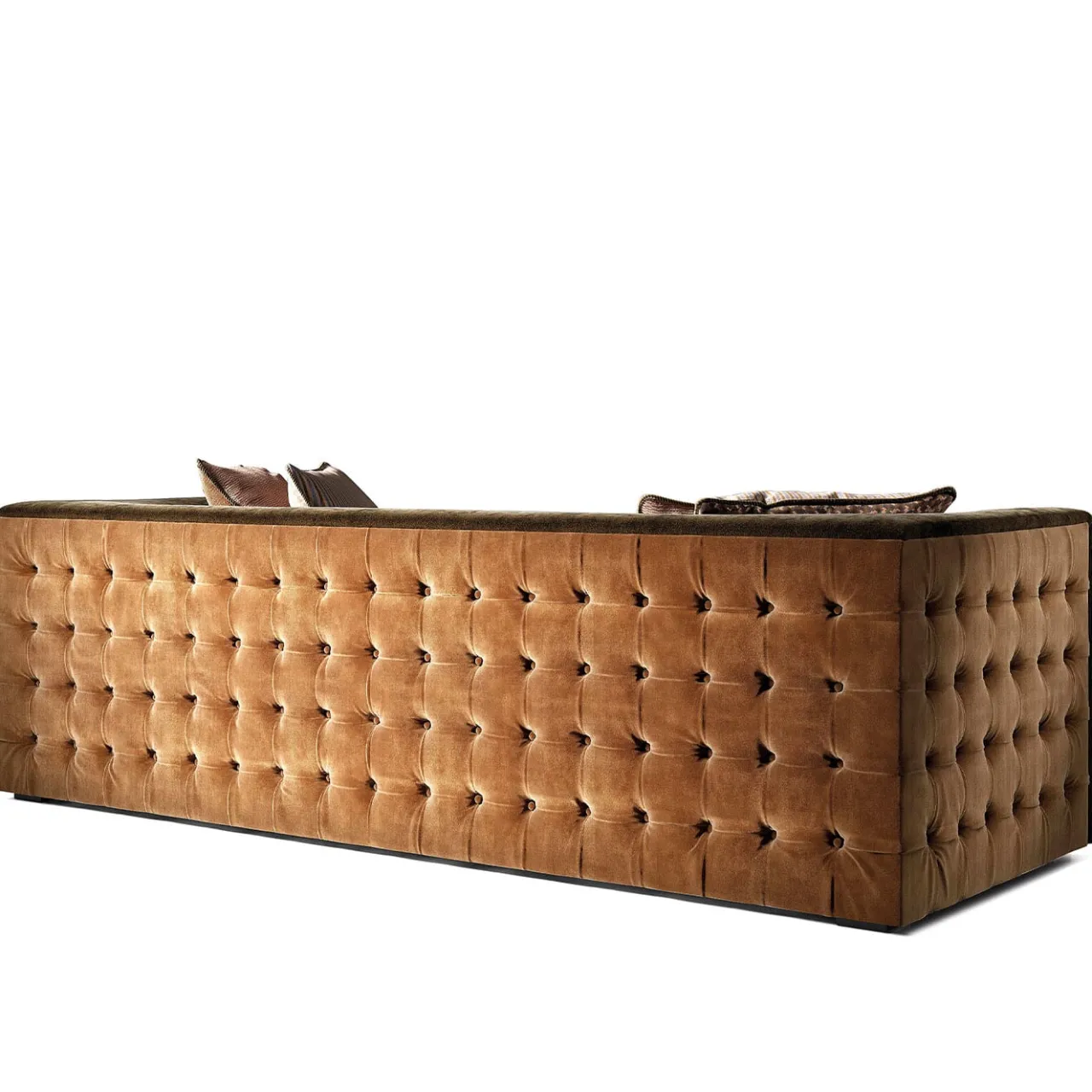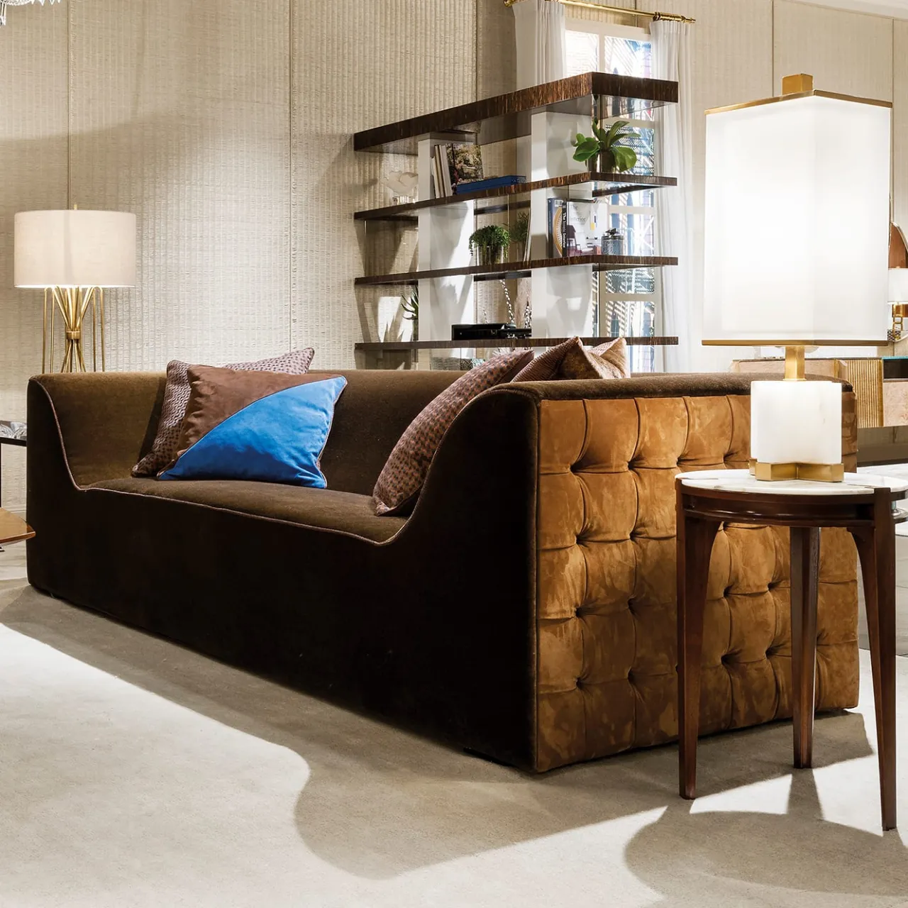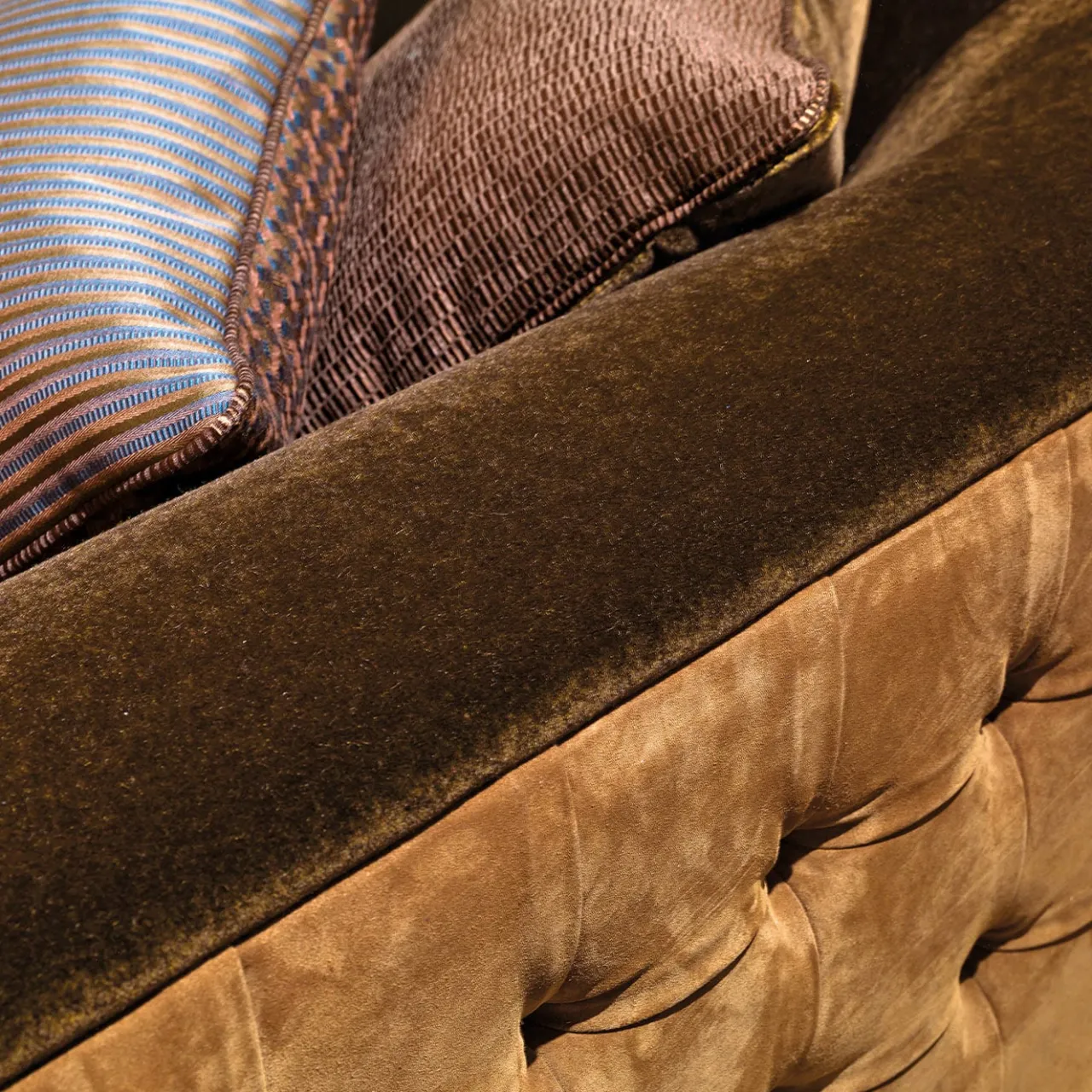 Caratterizzato da uno splendido schienale a ciuffi rivestito di pregiata pelle scamosciata e internamente rivestito di un morbido e liscio tessuto di velluto di mohair, questo splendido divano a tre posti farà la sua figura in interni moderni e tradizionali dall’atmosfera sontuosa. Caratterizzato da una tavolozza marrone, include quattro cuscini. Per ulteriori informazioni, consultare il Concierge.