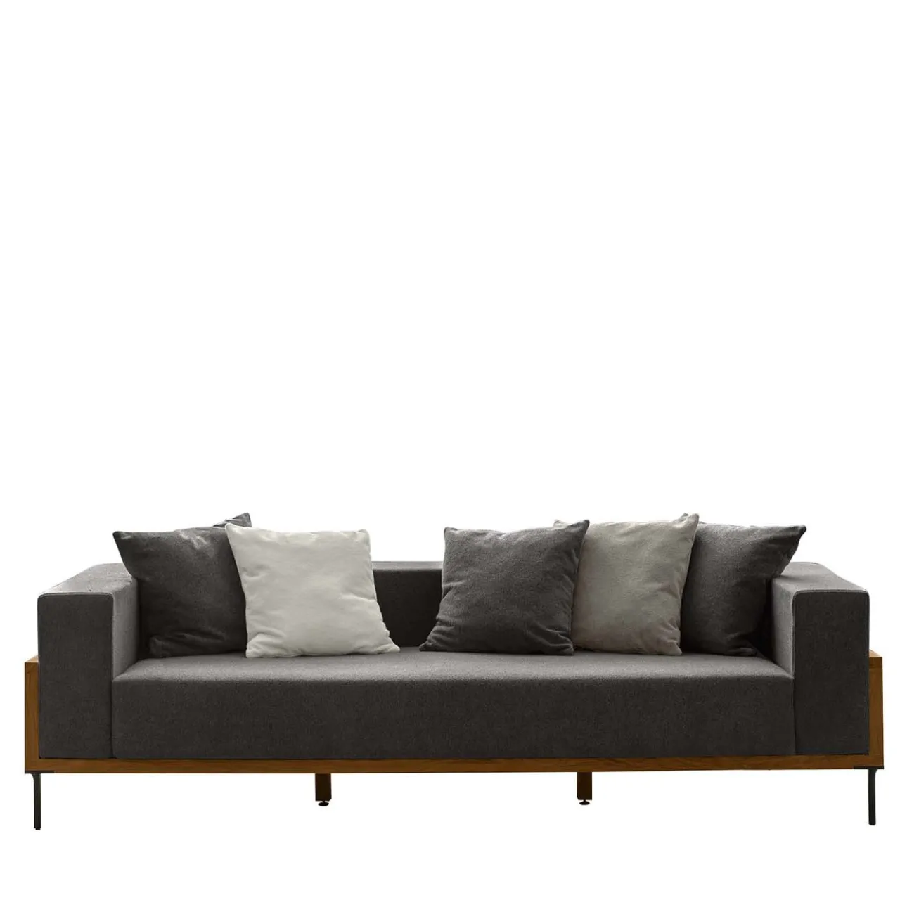 Questo moderno divano a tre posti emana un’eleganza senza tempo grazie alla sua silhouette pulita e minimale. Parte della Collezione Cleo, abbraccia l’uso di volumi e silhouette slanciate per creare un pezzo equilibrato ed elegante di arredamento funzionale. Sostenuto da una struttura in teak, il design modulare del divano è evidente nei cuscini imbottiti grigio canna di fucile, due quadrati e due rettangolari, che possono essere riorganizzati in una miriade di configurazioni per adattarsi a qualsiasi arredamento, occasione o gusto. Un’esplorazione della funzionalità dello spazio, questo pezzo eleverà l’arredamento di qualsiasi patio all’aperto. Certificazioni contrattuali e commerciali disponibili su richiesta.