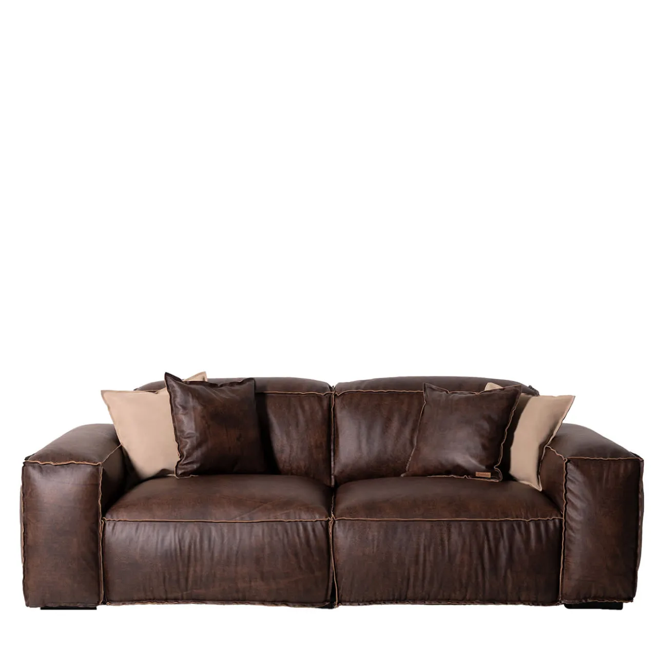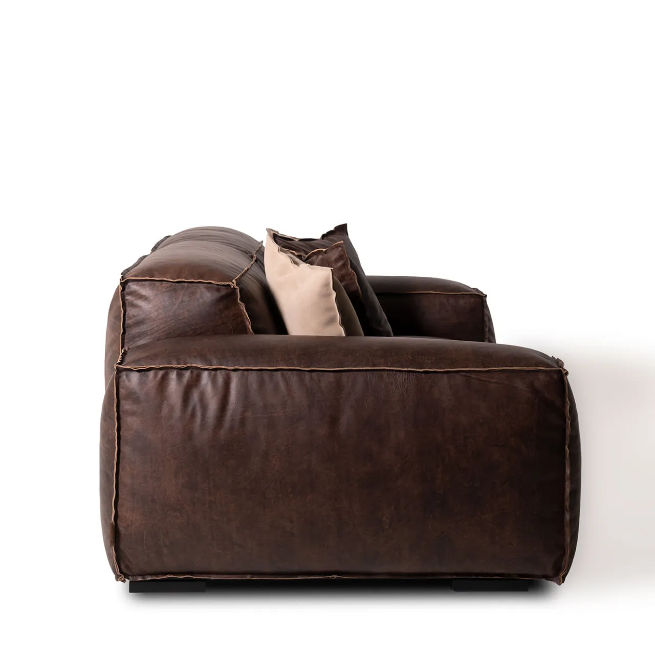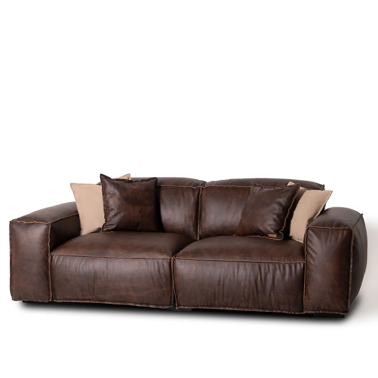 Sobrio ed elegante divano in pelle vintage. Placido è un concentrato di comfort e relax da godersi ogni giorno nel salotto di casa. Il comfort è garantito anche dalle sedute scorrevoli, che permettono di allungare i sedili e di offrire un ampio spazio di seduta. a scocca di questo divano è estremamente morbida e invitante, infatti questo divano made-in-Italy ha un’imbottitura in poliuretano espanso a densità differenziata, ricoperta da un piumino in piuma d’oca naturale. I cuscini sono decorativi.