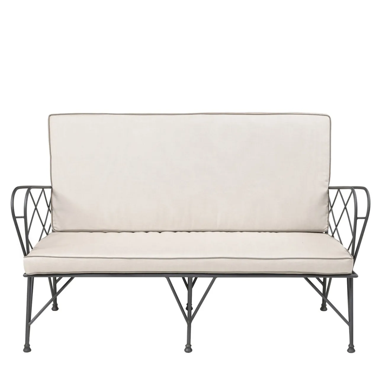 Combinando la classica lavorazione del ferro con il comfort all’aperto, questo divano in ferro emana eleganza e funzionalità. Realizzato meticolosamente in ferro di alta qualità, presenta un intricato disegno a reticolo che aggiunge un tocco di raffinatezza senza tempo. I soffici cuscini da esterno, rivestiti in tessuto resistente agli agenti atmosferici, assicurano un luogo di relax raffinato e invitante. Ideale per valorizzare qualsiasi patio o giardino, questo divano crea un palcoscenico elegante per il tè del pomeriggio o per gli incontri serali.