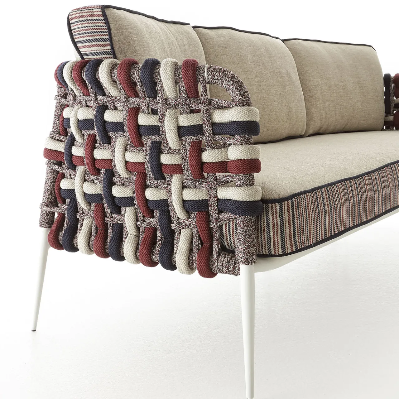 La collezione Eva si caratterizza per la combinazione di eleganza classica e look moderno. Le curve della sua forma morbida e la seduta sostenuta da cinghie elastiche garantiscono un maggiore comfort. I toni colorati ma naturali delle trecce completano l’eleganza del telaio in alluminio verniciato a polvere, creando un perfetto equilibrio tra tecnica e sensorialità. Per il rivestimento sono stati utilizzati tessuti in filato Olyna.