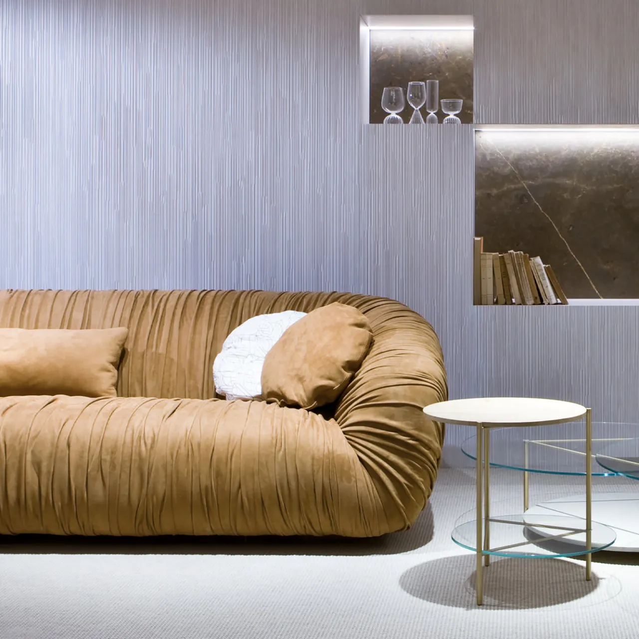 Questa splendida poltrona a tre posti della collezione Drap癡 combina un design unico, una squisita lavorazione artigianale e un comfort extra. La struttura metallica è lineare e allo stesso tempo accogliente, grazie allo schienale curvo e ai braccioli ricoperti da una spessa imbottitura. L’elemento distintivo di questo divano è il rivestimento in pelle Nubuck 2100, che crea una moltitudine di pieghe, aggiungendo un effetto superbo, sofisticato e dinamico. Questo pezzo sartoriale può essere rivestito anche in velluto ed è disponibile anche con una seduta in memory foam; chiedete al Concierge i dettagli delle diverse opzioni.