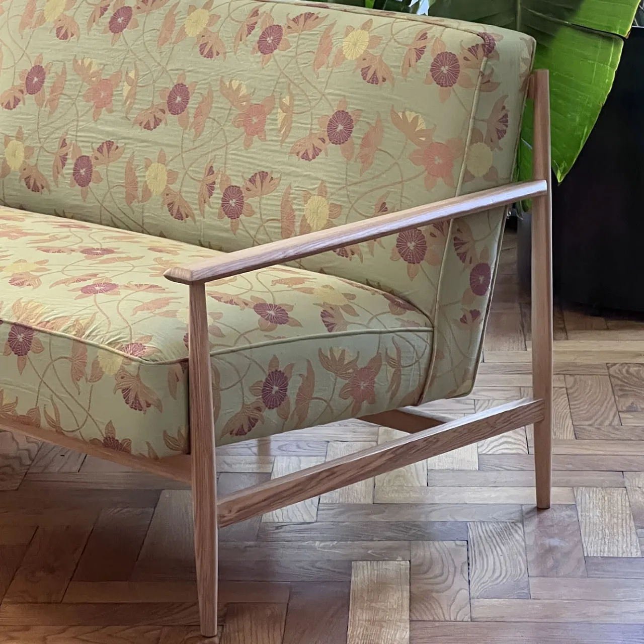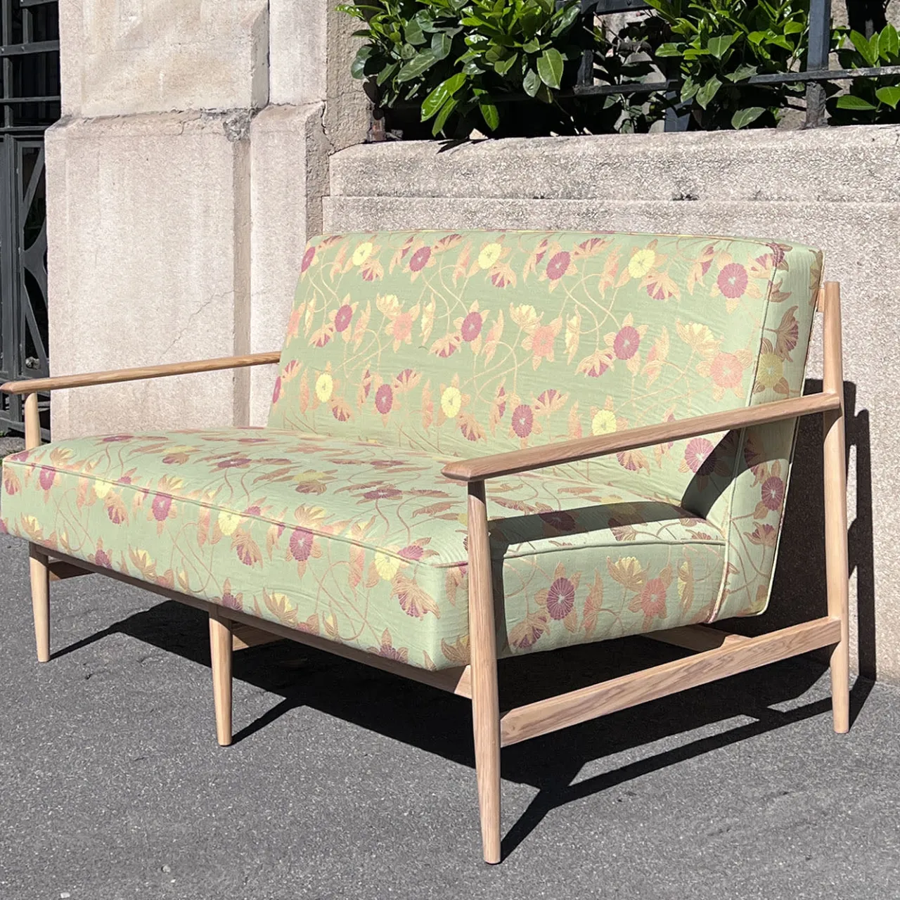Disegnato da Monica Geronimi e ispirata al design pulito e anonimo dei mobili brasiliani degli anni ’50, Gaia è un oggetto raffinato che unisce comfort ed eleganza. La struttura di Gaia è realizzata da esperti artigiani in pregiati legni di noce e frassino. La seduta in Edizione Limitata frassino e tessuto con motivo floreale, può essere rivestita in velluto, pelle Elmo o tessuto, eventualmente anche fornito dal cliente. Chiedete al Concierge per i dettagli.