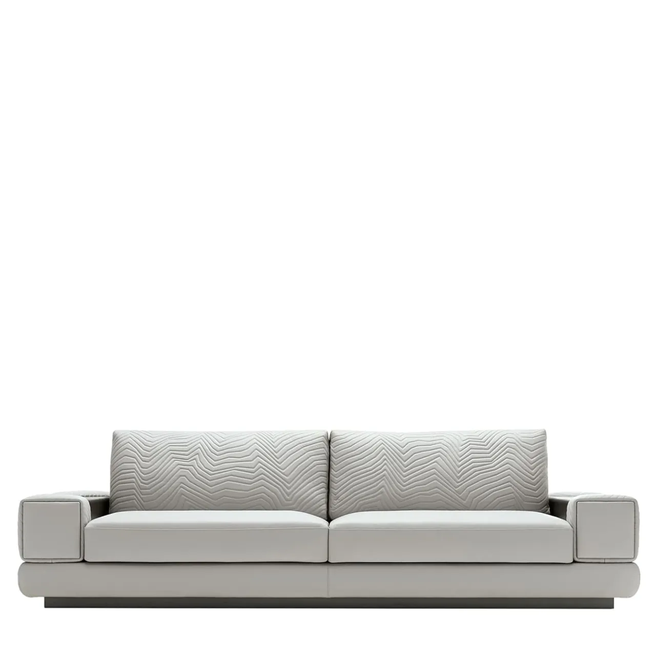 Divano a 3 posti disponibile in pelle di prima scelta, pelle nabuk, pelle stampata lucertola, velluto o tessuto scamosciato. Sedute e fianchi del divano con cuciture speciali in poliuretano espanso avvolto in piuma d’oca. Schienale e braccioli trapuntati. Fascia metallica nei braccioli con logo Giorgio Collection laserato. Base e fasce in acciaio inox satinato grigio nichel. Chiedere al concierge i dettagli della personalizzazione.