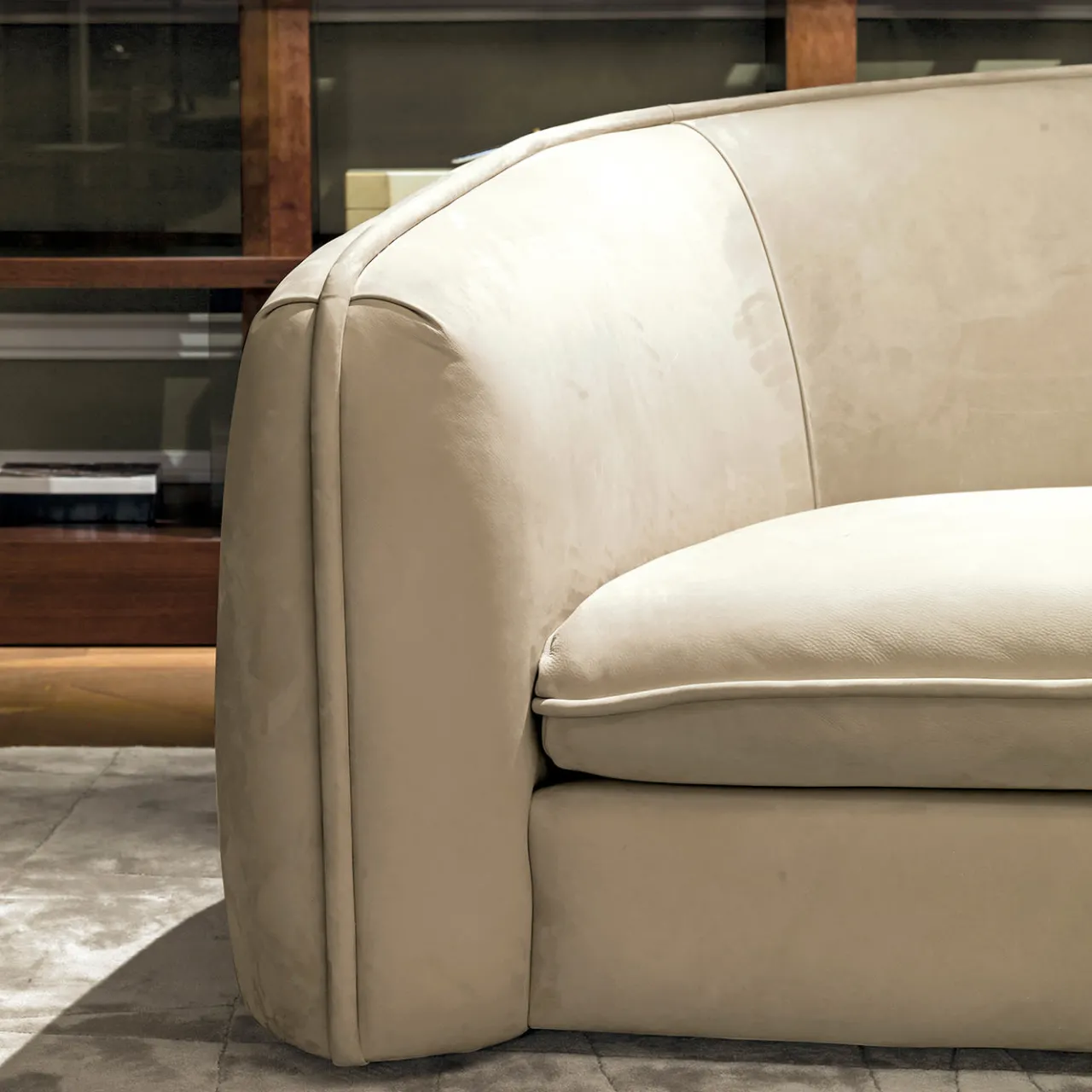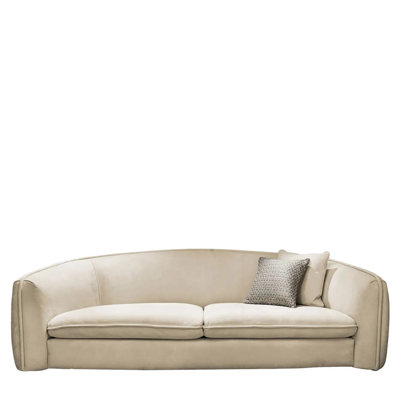 Eleganza e raffinatezza senza tempo caratterizzano questo splendido divano, caratterizzato da linee pulite e semplici dal fascino accogliente. Con una forma a tre posti, è interamente rivestito in pelle nabuk beige. Include due cuscini. Per ulteriori dettagli e opzioni di personalizzazione, contattare il Concierge.