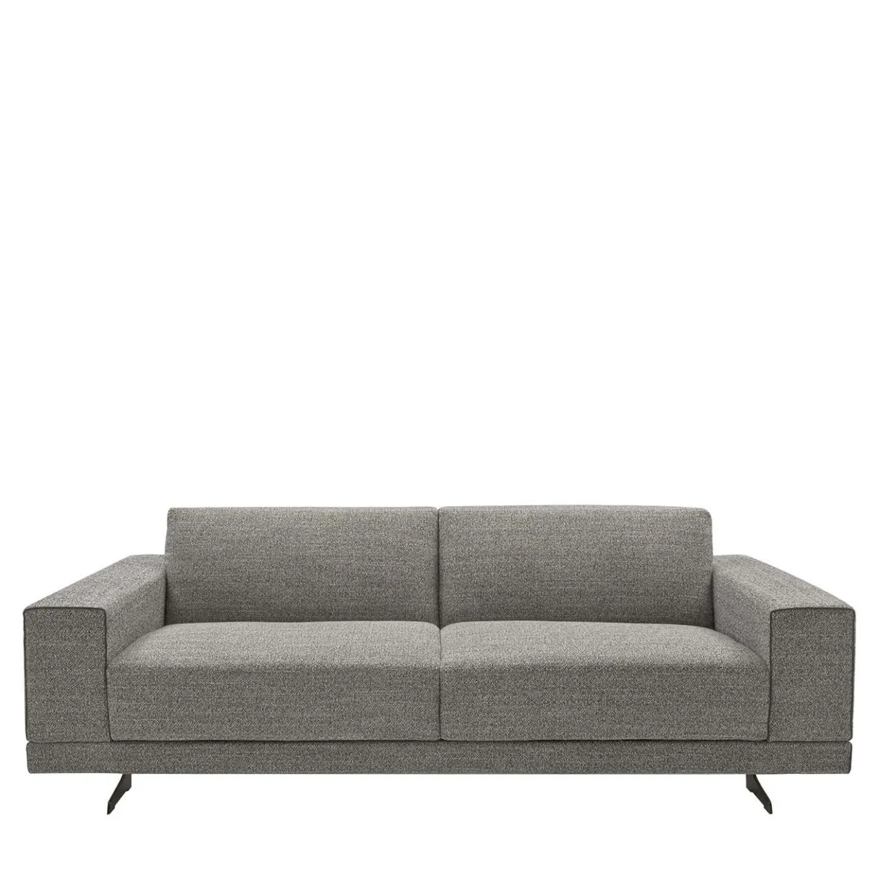 In perfetto equilibrio tra eleganza e funzionalità, questo divano letto si integra in qualsiasi ambiente. Di giorno è un divano sofisticato, di notte diventa un comodo letto che si apre con un semplice meccanismo. La struttura in legno è dotata di cuscini in poliuretano espanso (densità della seduta: 35kg/3m e dello schienale: 25kg/3m). Il materasso a molle, lungo 200 cm e alto 13 cm, poggia su doghe di legno. Una volta aperto, la profondità totale del pezzo è di 218 cm. I piedi sono in metallo nichelato nero. Il tessuto grigio con profili a contrasto può essere personalizzato. I braccioli sono larghi 17 cm e possono avere dimensioni diverse.