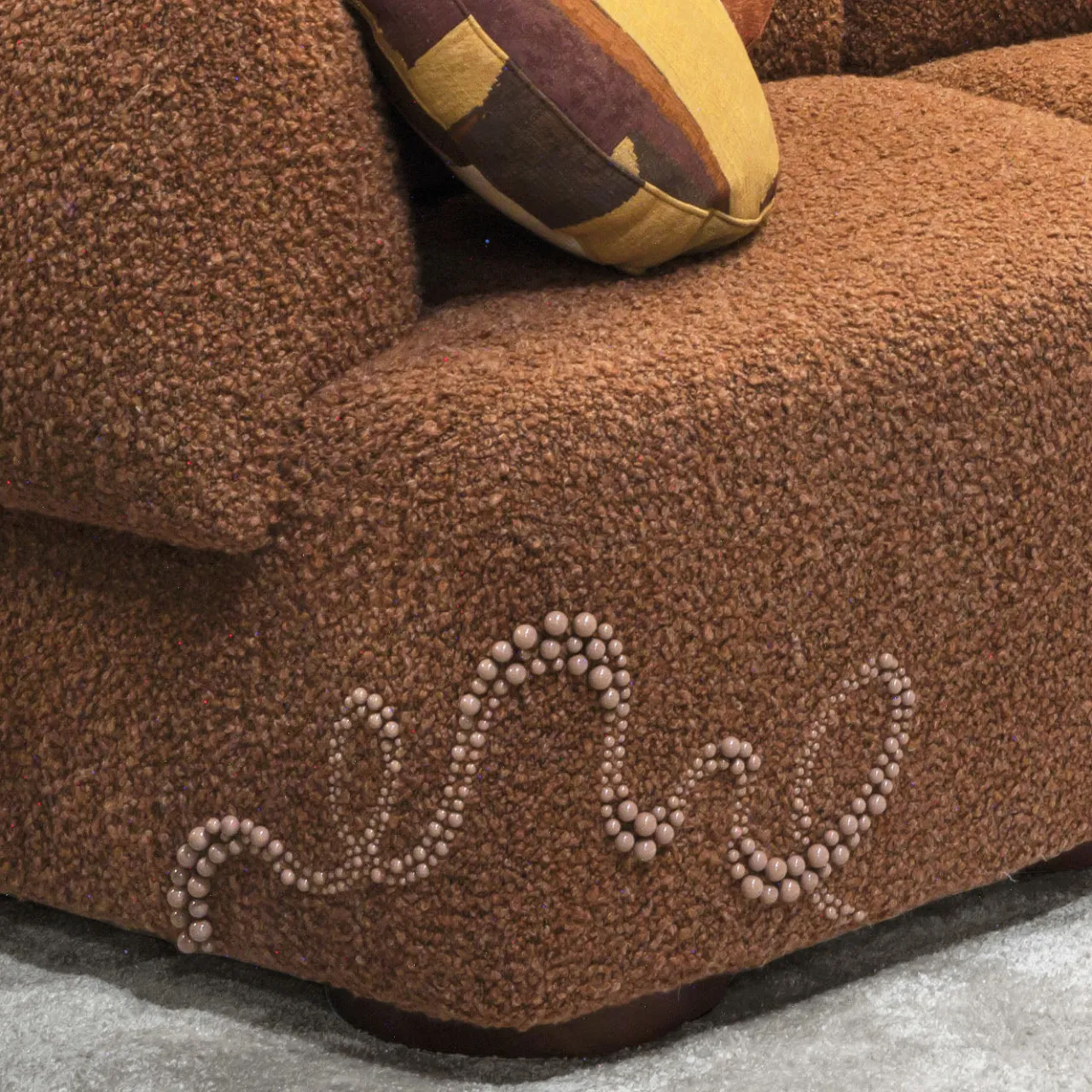 Questo divano modulare a tre posti, rivestito in tessuto bouclé testurizzato, presenta dettagli decorativi in perle agli angoli dei due moduli esterni. Progettato per la flessibilità, questo divano consente diverse configurazioni di assemblaggio per adattarsi a varie disposizioni e dimensioni di seduta. La forma arrotondata e imbottita offre un’esperienza di seduta accogliente e invitante, mentre i delicati dettagli in perle aggiungono un tocco raffinato al design complessivo. I cuscini decorativi sono inclusi.