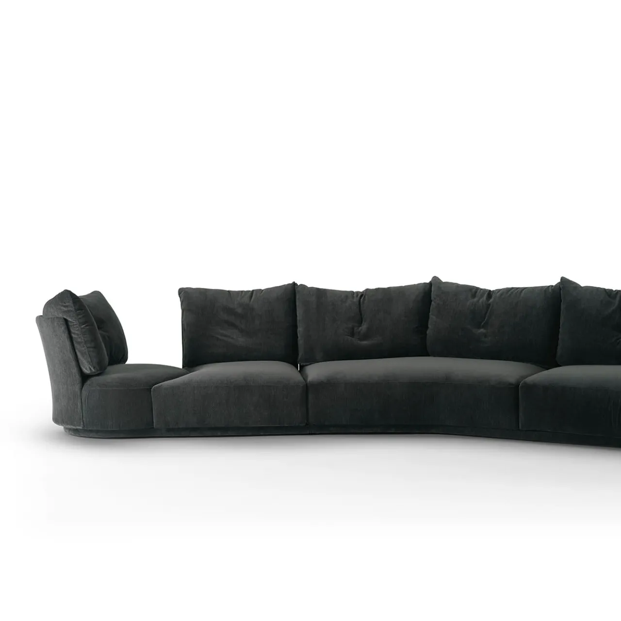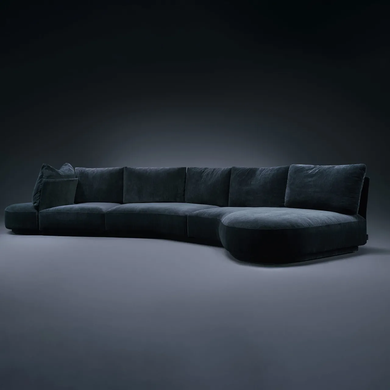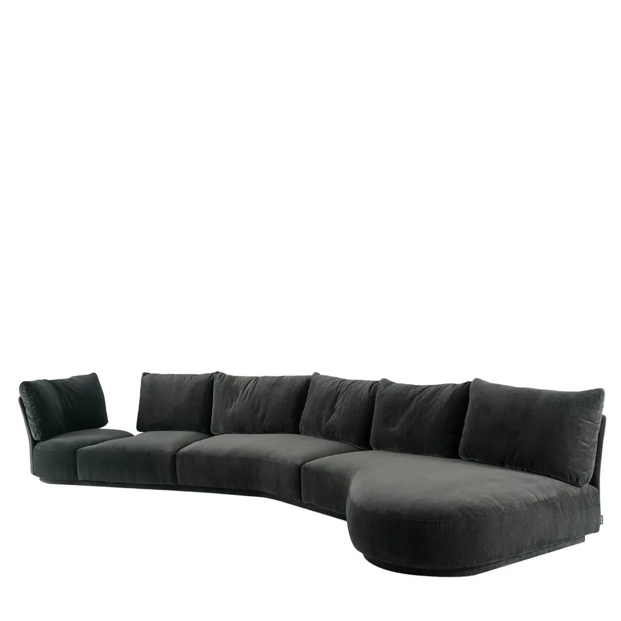 Caratterizzato da una robusta base in legno rivestita in poliuretano resiliente, questo divano modulare dello Studio Angeletti Ruzza unisce il comfort allo stile contemporaneo. Gli schienali e i braccioli in acciaio rivestiti in poliuretano garantiscono la durata nel tempo. I cuscini di seduta in poliuretano a densità differenziata, con trapunta in piuma sterilizzata, offrono un comfort soffice. Rivestito in tessuto nero, con piedini antiscivolo e disponibile in misure personalizzabili. Include una poltrona girevole.