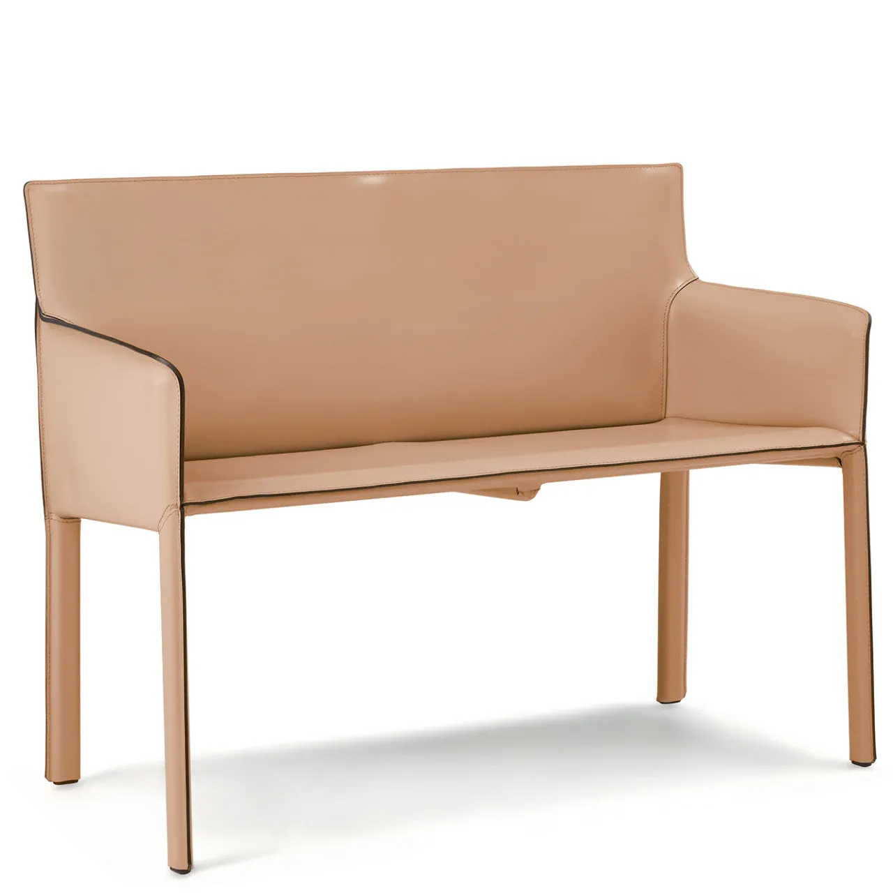 La collezione Pasqualina è disegnata da Grassi&Bianchi. Questo divanetto ha una struttura in tubolare d’acciaio rivestita interamente in pelle, colore “Naturale”. Tutti i componenti sono disponibili in altri colori. Per maggiori informazioni, contattare il concierge.