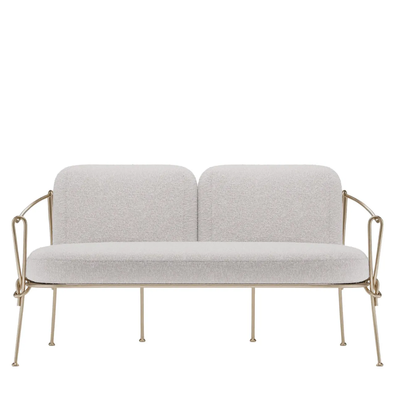 Il divano a due posti Corda combina l’eleganza con la funzionalità all’aperto, grazie a un’imponente struttura in ferro dorato, resistente ed elegante. La struttura è realizzata in ferro forgiato, zincato a caldo per una maggiore resistenza agli agenti atmosferici e rifinito con vernice color champagne, per garantire una bellezza duratura. Rivestito in tessuto Snow di categoria 2, questo divano offre una seduta confortevole, perfetta per le riunioni all’aperto o per i momenti di serenità in giardino. Il suo design bilancia l’estetica moderna con un comfort invitante, rendendolo un’aggiunta ideale a qualsiasi spazio esterno.