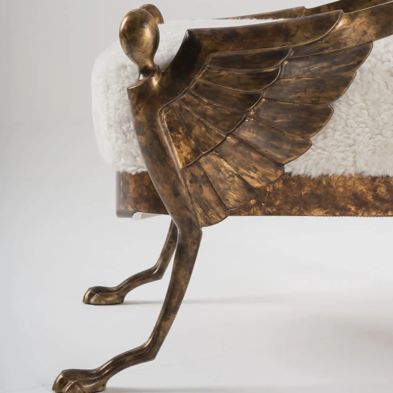 Squisita fusione di arte e design, questo divanetto presenta una struttura in ottone fuso con intricate incisioni cesellate a mano. I braccioli scolpiti si estendono in dettagli alati, evocando la grandezza classica. Una base in legno con accenti in foglia d’oro sostiene la struttura, mentre la tappezzeria bianca aggiunge una ricca consistenza. Audace ma raffinato, questo pezzo attira l’attenzione con la sua presenza scultorea. Per ulteriori dettagli, contattare il Concierge.
