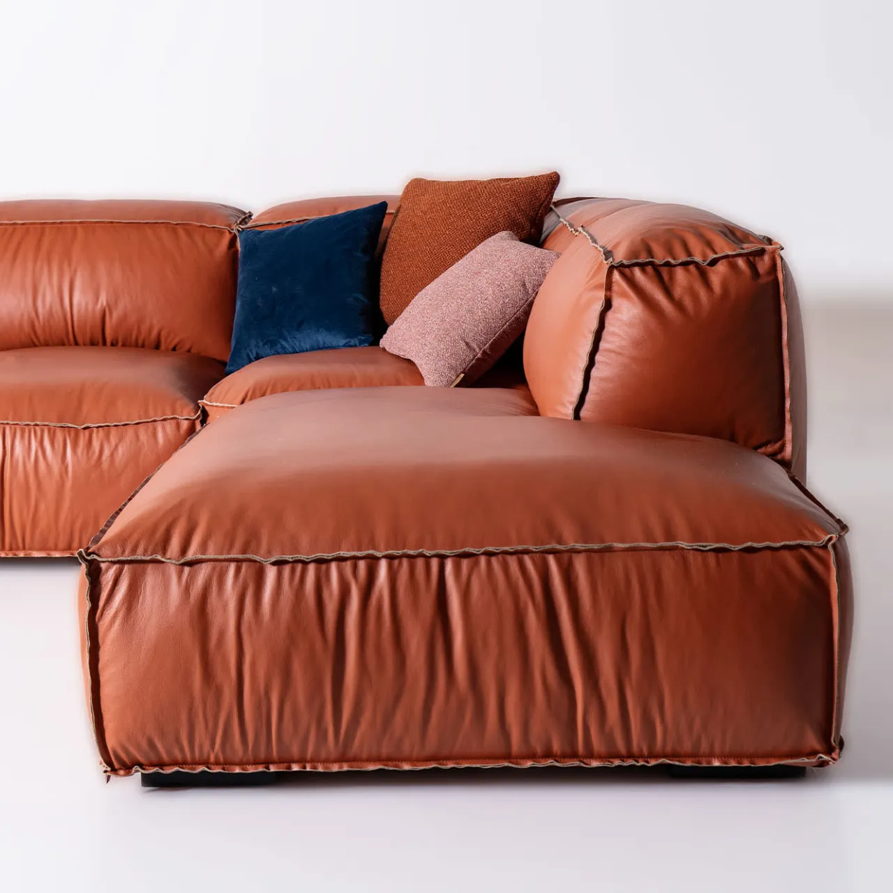 Il divano angolare Placido, rivestito in pelle anilina, unisce eleganza e comfort, perfetto per il relax quotidiano in salotto. Le sue sedute scorrevoli si estendono per offrire un ampio spazio di seduta, garantendo il massimo comfort. Il divano presenta una struttura morbida con imbottitura in poliuretano espanso a densità multipla, ricoperta da un piumino d’oca naturale. Le gambe sono in faggio con finitura laccata nera. I cuscini decorativi non sono inclusi.