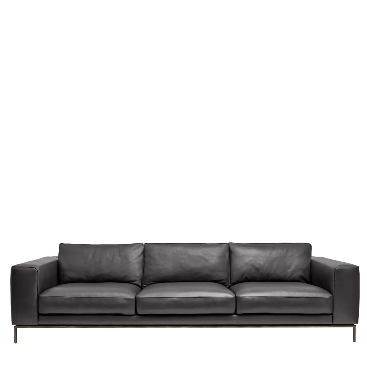 Struttura di base in compensato di pioppo a doppio strato rinforzato con profilo metallico. È gommata con due densità: 30% per le parti esterne e 70% per le parti superiori, per migliorare il sostegno dell’imbottitura. L’interno del cuscino dello schienale è costituito da un involucro di cotone imbottito con una combinazione di acrilico e piuma d’oca. Cuscini di seduta imbottiti in poliuretano espanso a doppia densità. Base in metallo verniciato a polvere ancorata alla struttura portante del telaio. Cuscini sfoderabili.