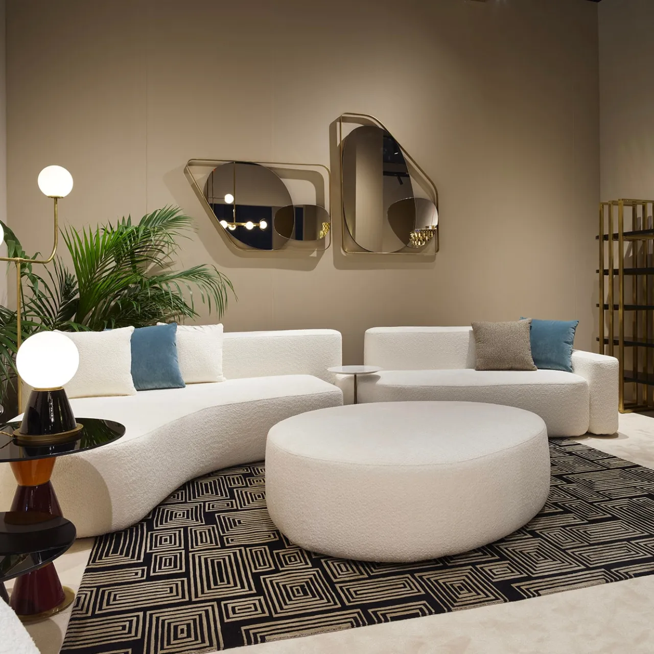 Questo esclusivo divano di ispirazione contemporanea è un trionfo di volumi ricchi delineati da linee pulite e sigillati da un rivestimento in tessuto bianco Karan di sobria eleganza. È possibile acquistare diversi accessori per arricchire la sua funzionalità ed esaltare il piacere della seduta; per maggiori dettagli, rivolgersi al Concierge. Designer: La Récréation – P. Angelo Orecchioni Arch.