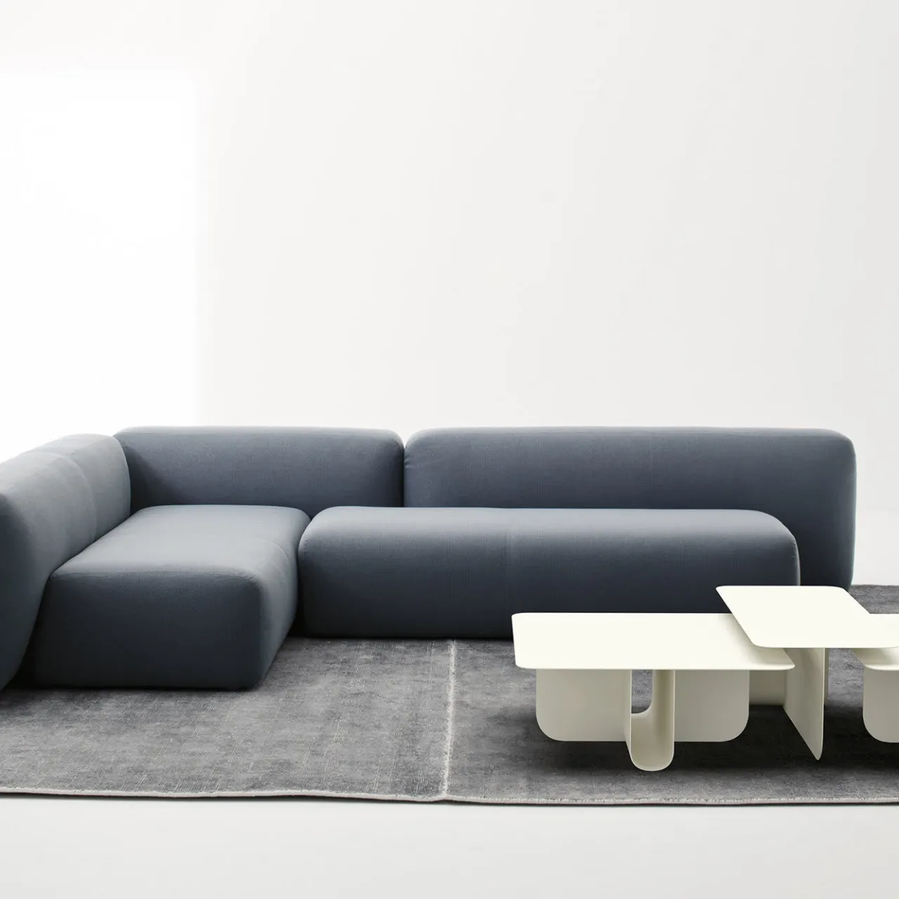 Questo divano fa parte di una collezione di sedute imbottite ispirate all’arte giapponese di disporre le pietre, da cui prende il nome. I moduli vantano volumi essenziali di ispirazione organica, disposti in armoniose composizioni sfalsate. Scultoreo e liscio, questo pezzo presenta una struttura in frassino massiccio, abete massiccio e un pannello in masonite. L’imbottitura è in poliuretano ignifugo e indeformabile a densità differenziata con fibra di poliestere. Il rivestimento in tessuto blu petrolio è sfoderabile su richiesta.
