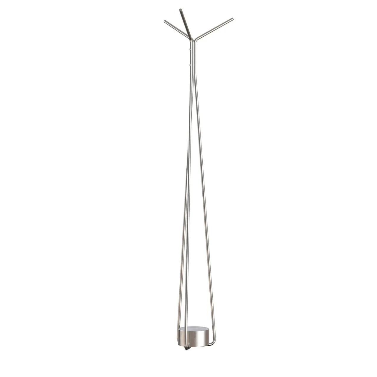 Un pezzo di design funzionale, versatile e senza tempo, questo appendiabiti è interamente realizzato in acciaio, con una finitura in acciaio naturale. La sua silhuette minimalista e inventiva è composta da una base circolare intagliata e da tre lunghi steli verticali piegati in alto.