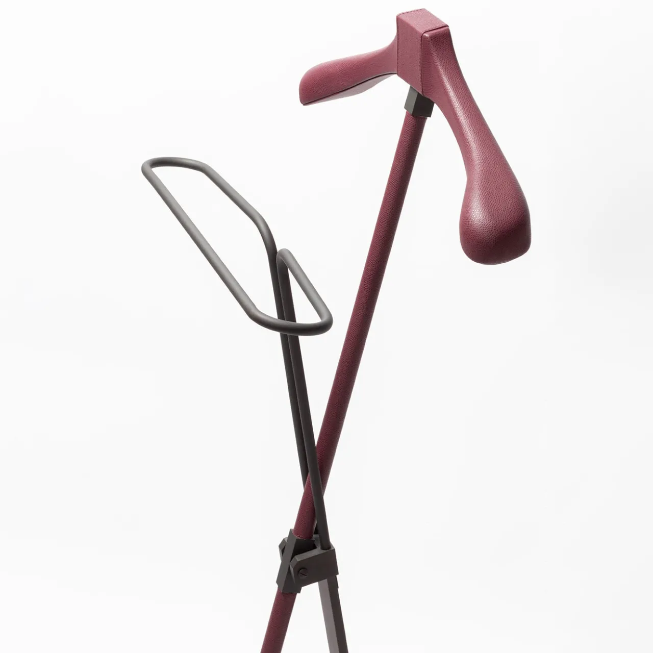 Struttura metallica pieghevole disponibile in diverse finiture con inserti in pelle. Finiture metalliche disponibili: cromo / bronzo / ottone.