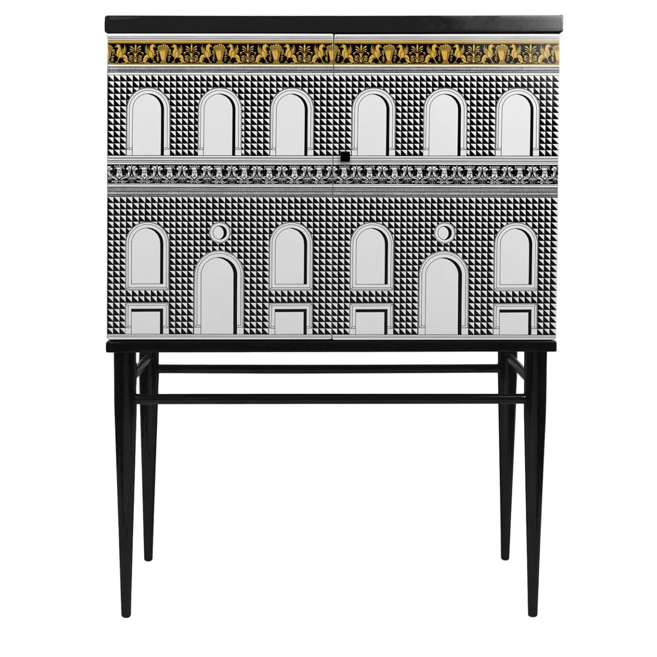 Il mobile Fornasetti è un mobile contenitore in legno serigrafato e laccato a mano secondo il metodo tradizionale dell’Atelier. Il motivo evoca il Rinascimento italiano secondo quel viaggio metaforico nel tempo intrapreso da Fornasetti con la collezione Contemporary Antiquity per la Milano Design Week 2021. Ogni mobile in legno di Fornasetti è serigrafato e laccato a mano e ogni piccola discrepanza tra creazioni simili è il risultato della lavorazione artigianale.