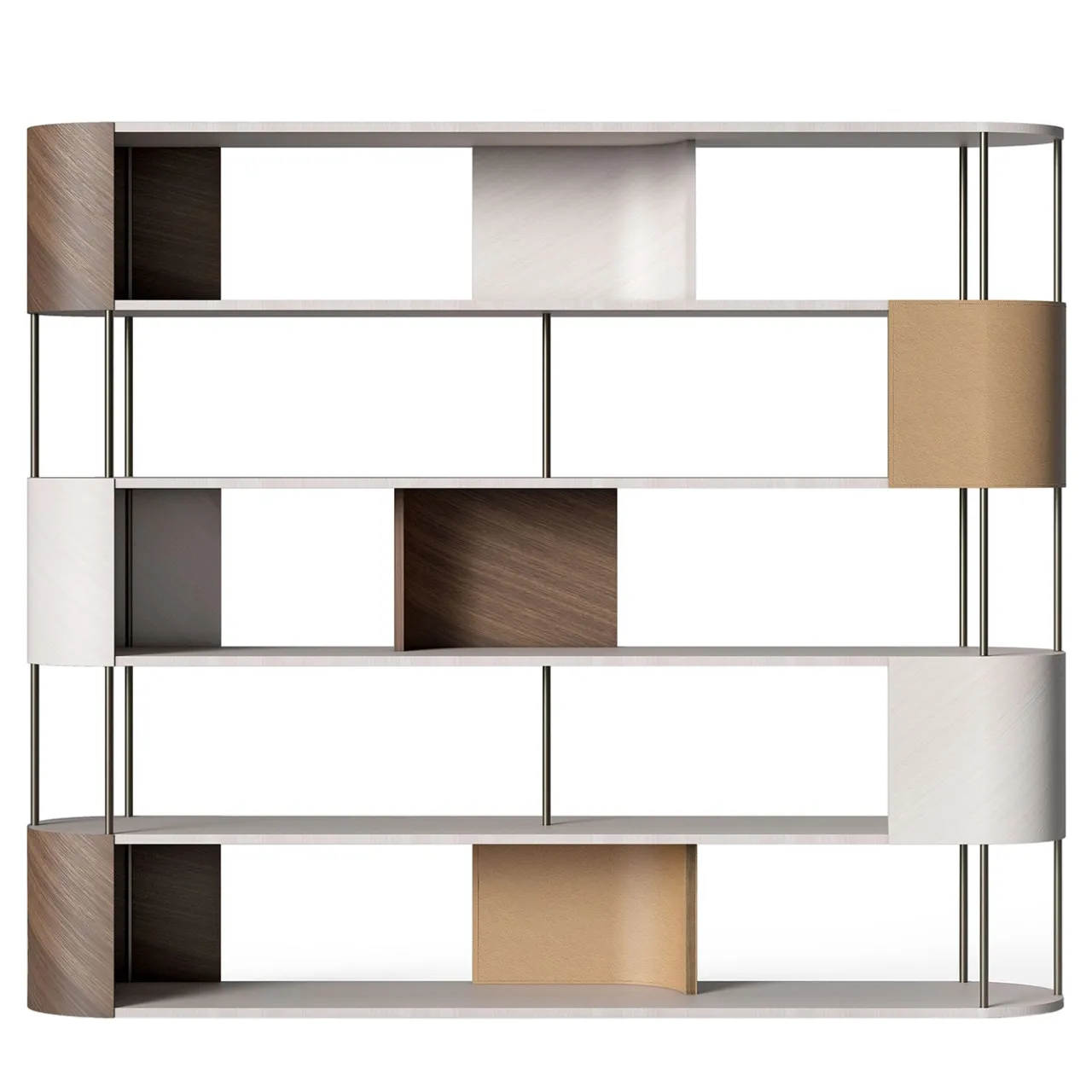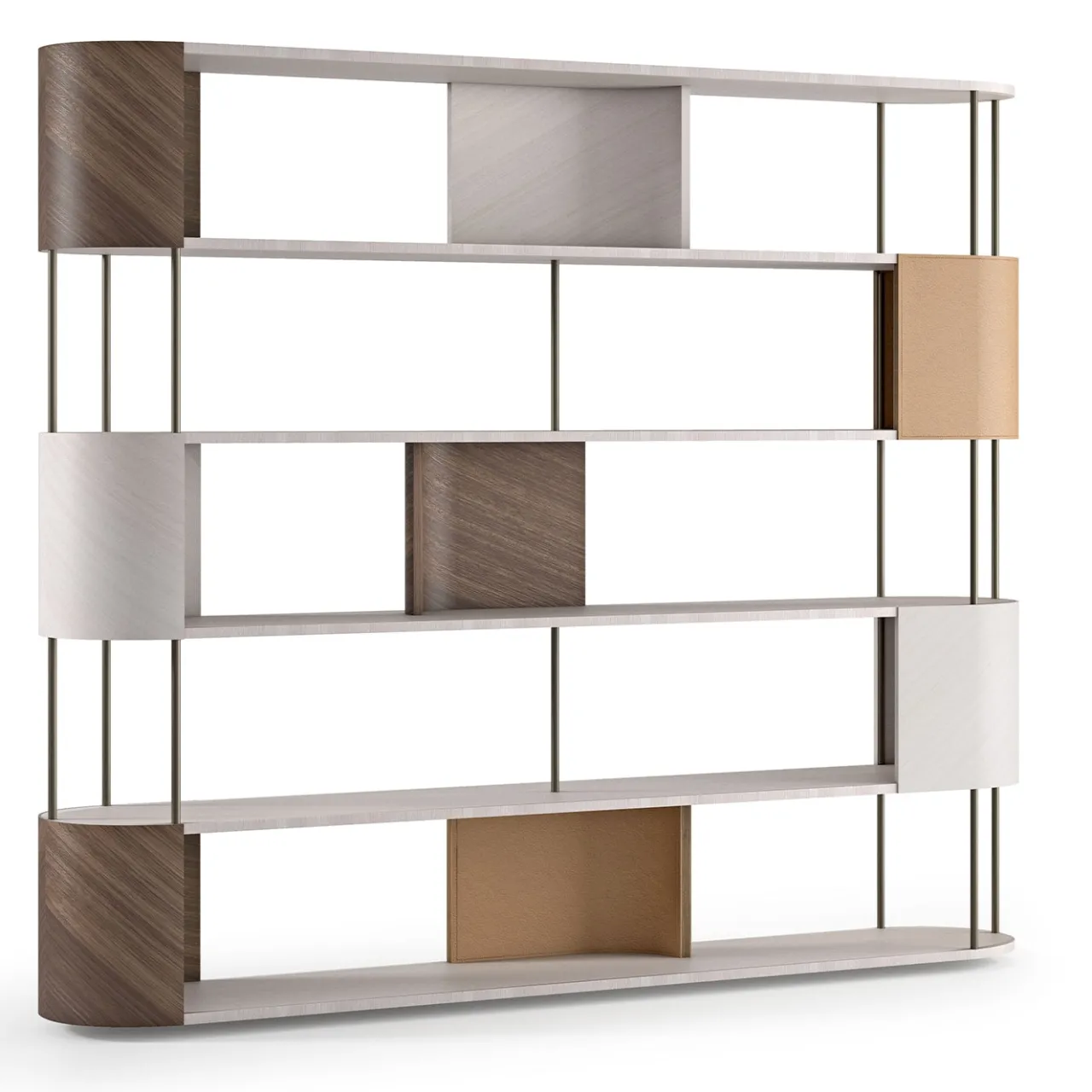 L’identità volumetrica unica che caratterizza piazza Gae Aulenti a Milano ha ispirato le proporzioni e le linee di questa splendida libreria. Il suo design arioso, frutto della giustapposizione di cinque ripiani sostenuti da barre metalliche e accentuati da volumi curvilinei rifiniti in Tay scuro o chiaro, noce canaletto o pelle, favorisce un’esposizione indipendente dal fascino sia funzionale che decorativo. Contattare il Concierge per opzioni modulari e personalizzate.