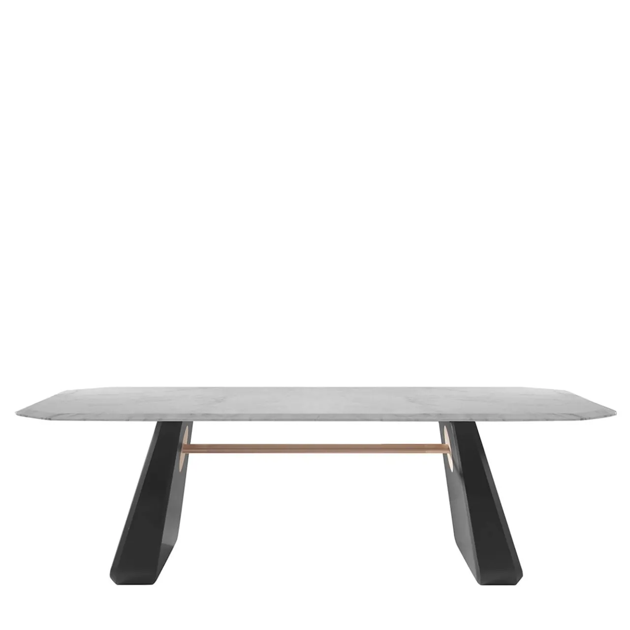 L’Inge Marble 210 Dining Table di Artefatto Design Studio presenta un top in marmo Calacatta Premium, sostenuto da due plinti in legno laccato lucido Steel Blue, collegati da una barra in finitura metallica Satin Champagne. Ispirato all’architettura giapponese e a formazioni rocciose inglesi, questo tavolo unisce eleganza e robustezza, ideale per ambienti moderni. Disponibile in diverse opzioni di personalizzazione.